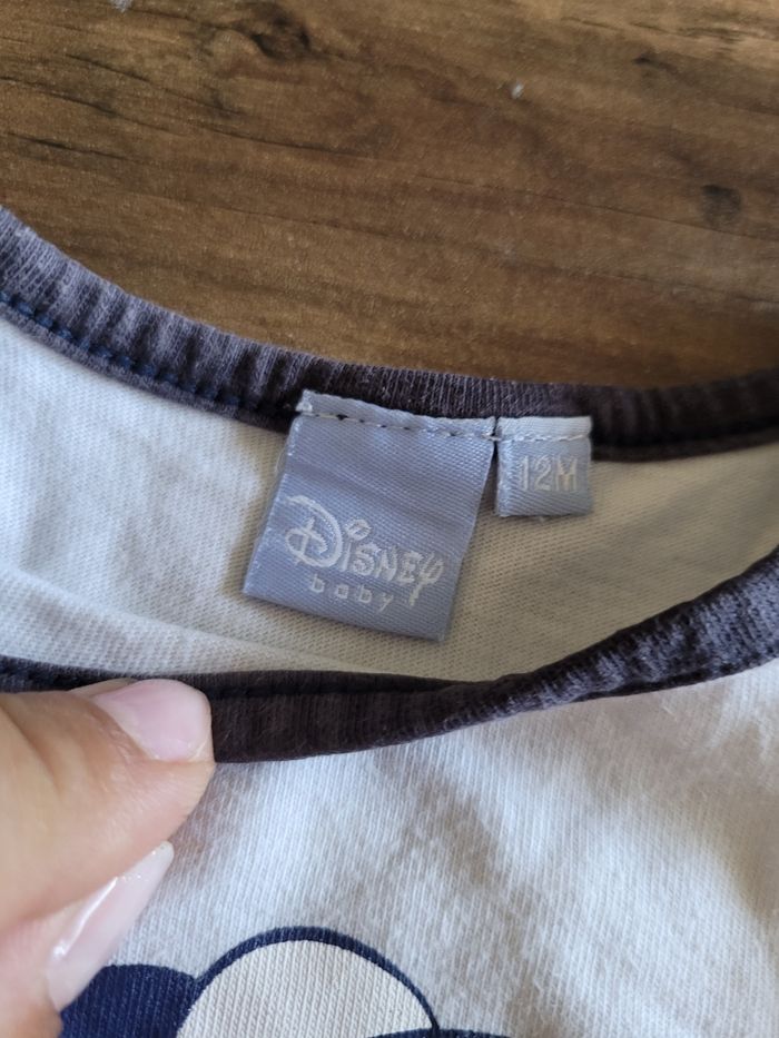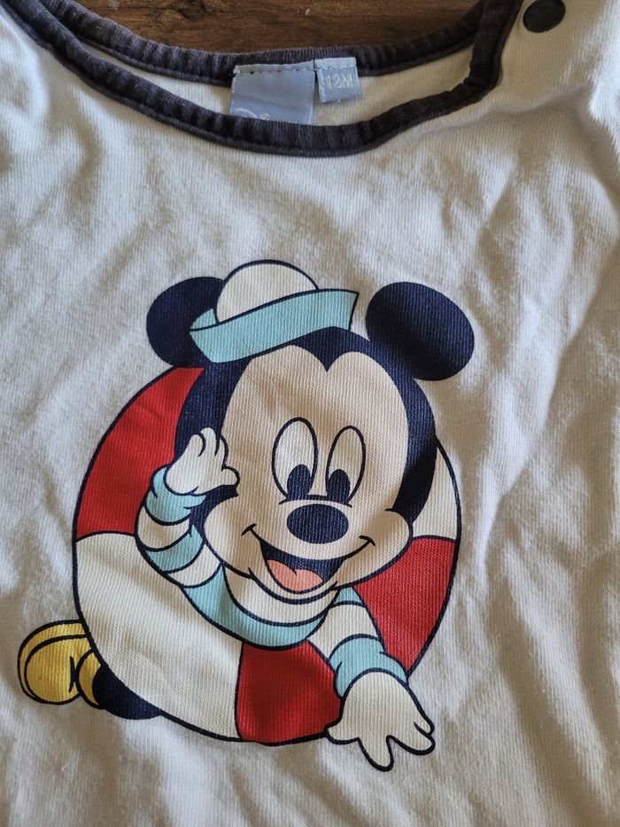 Petit T-shirt Manche court Blanc avec bébé mickey Taille 12 mois Attaché en haut a gauche Matière coton je pense Mi saison Voir toutes saisons
