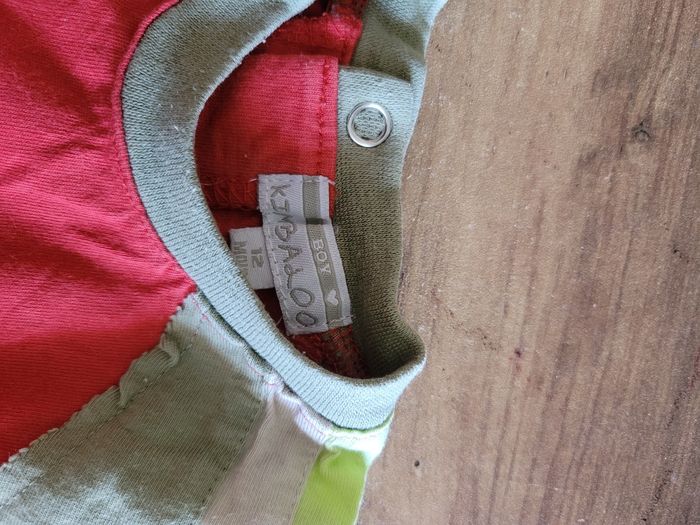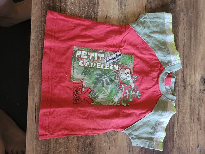 Petit T-shirt Manche court Rouge et kaki Taille 12 mois Mi saison Voir toutes saisons Attaché derrière 100% coton