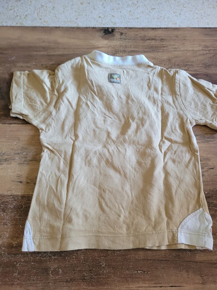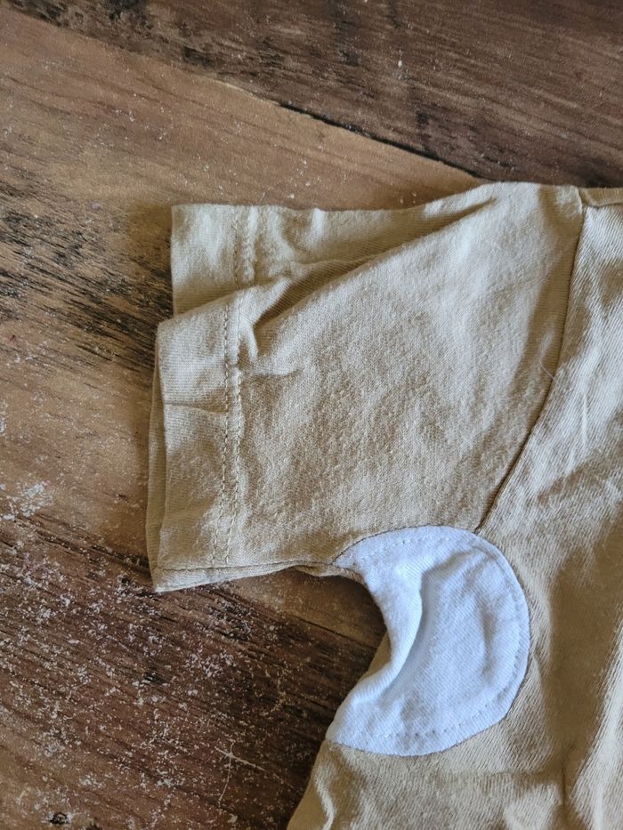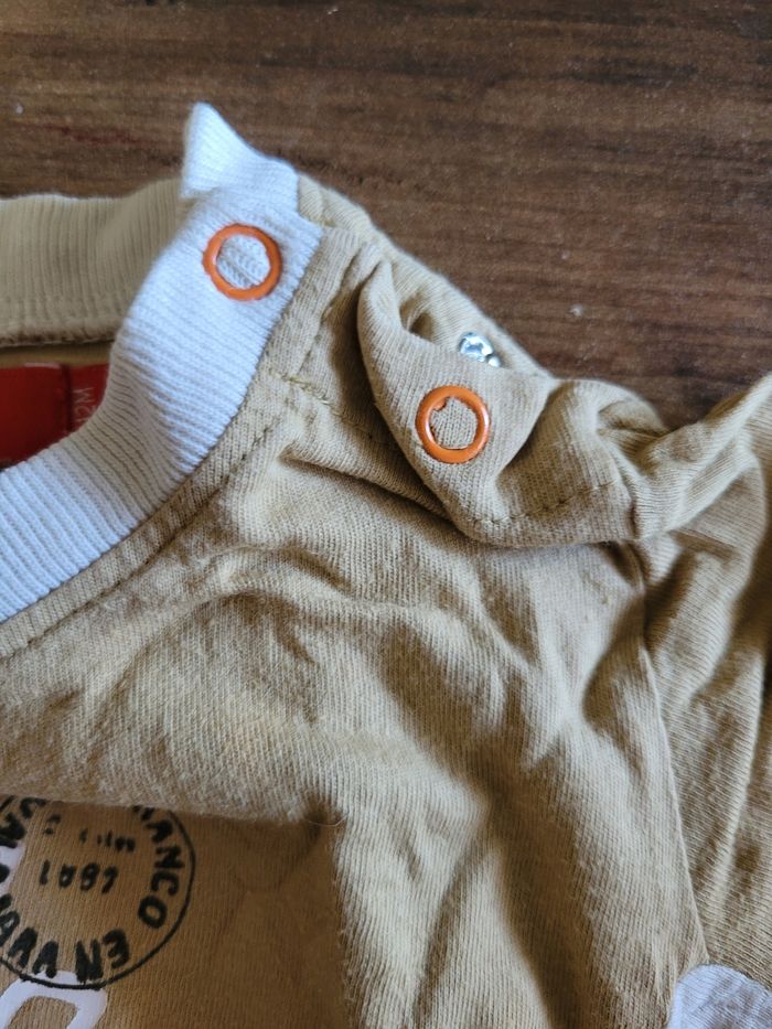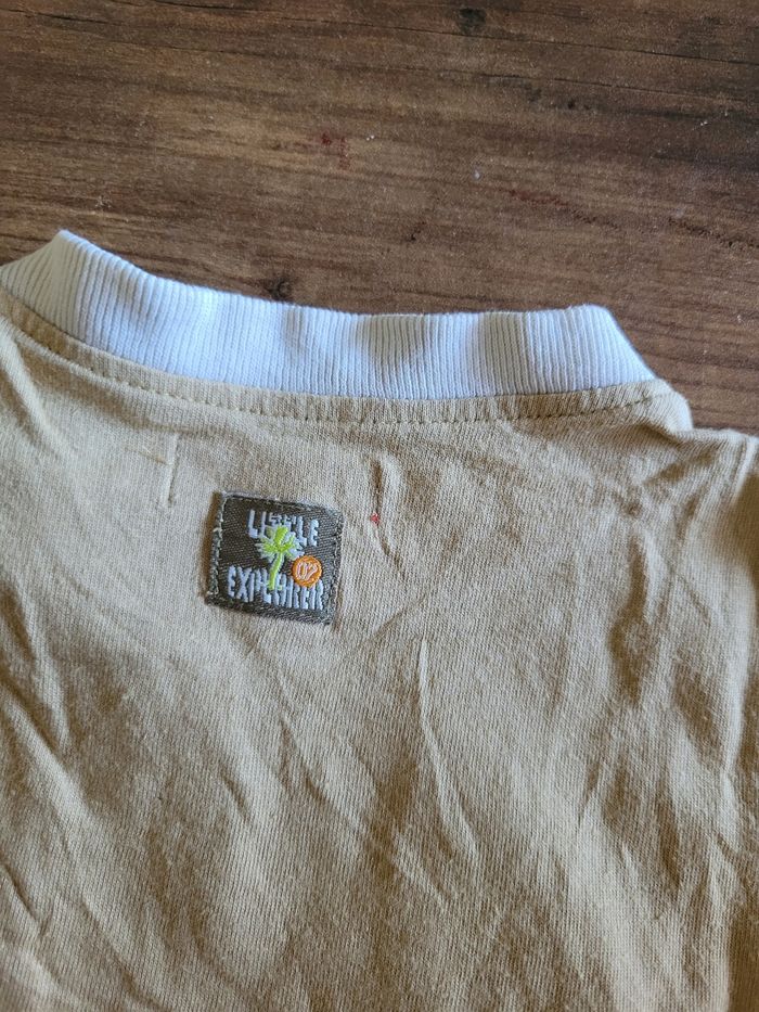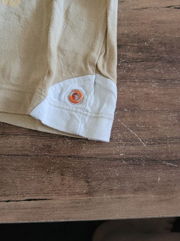Petit T-shirt Manche court Beige et blanc Taille 12 mois Mi saison Voir toutes saisons Attaché en haut a gauche 100% coton