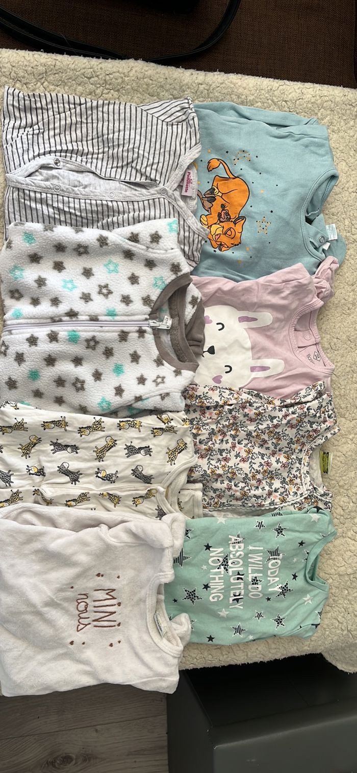 Bonjour, je vends huit pyjamas taille 3-6 mois. Ils sont en bon état.