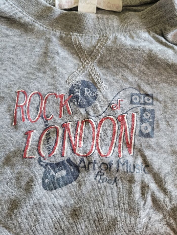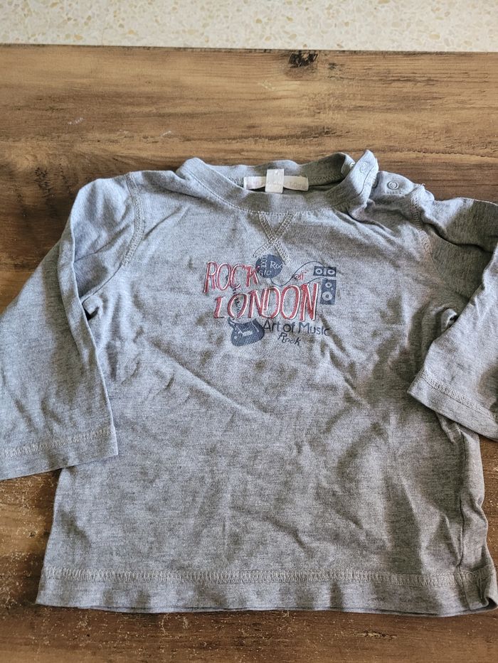Petit T-shirt Manche longue Gris Fan de rock Mixte Taille 12 mois Mi saison Attaché en haut a gauche 85% coton 15% viscose