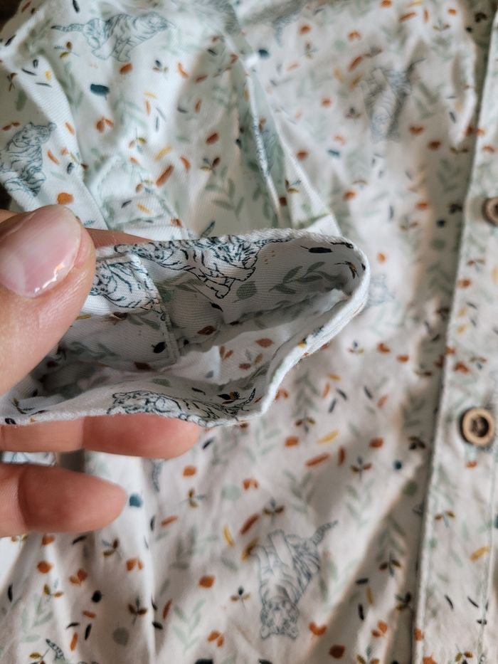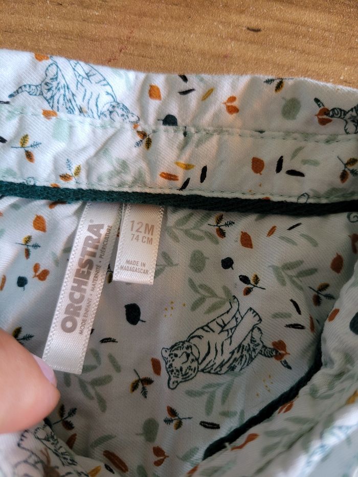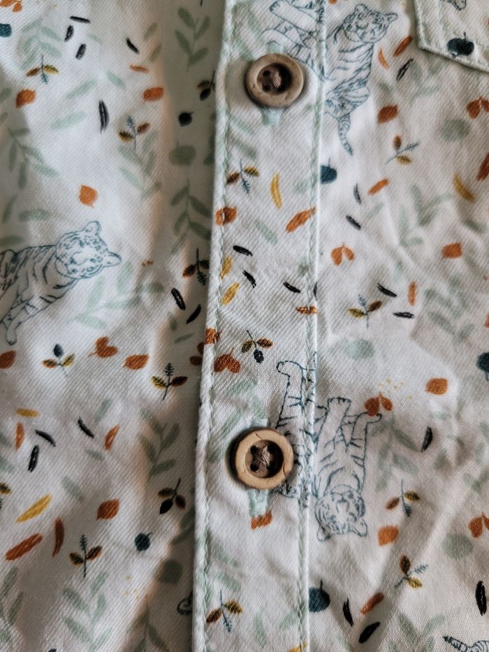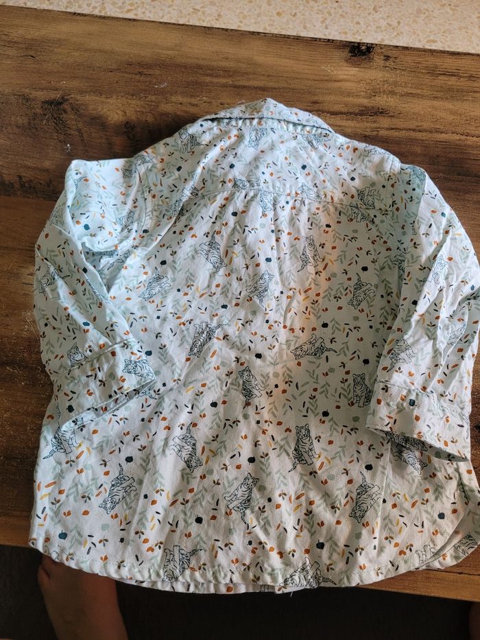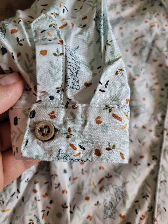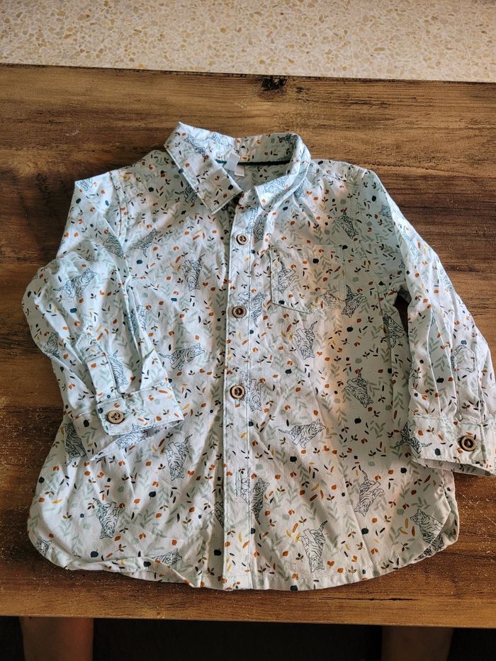 Magnifique petit chemise Manche longue Blanc et vert d'eau avec des tigre Taille 12 mois Mi saison Poche devant 100% coton