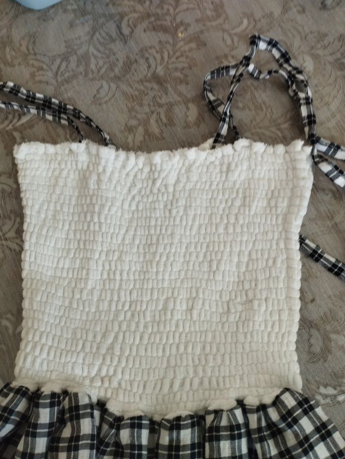 Robe cousue main, largeur smock (peut aller jusqu'à 25cms facilement sans trop tirer) et longueur en photos Bretelles à nouer sur l'épaule