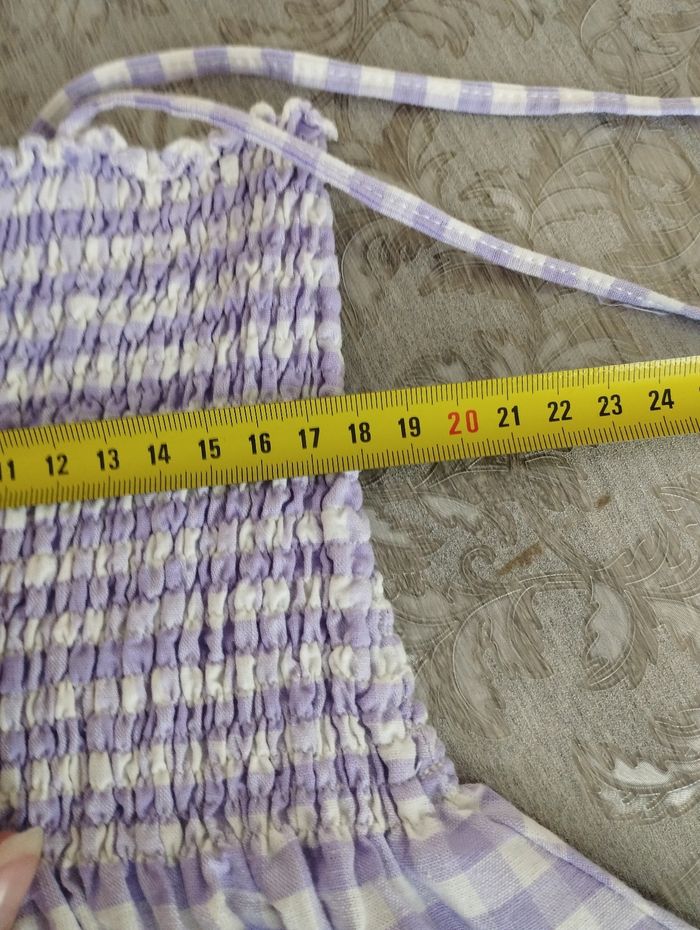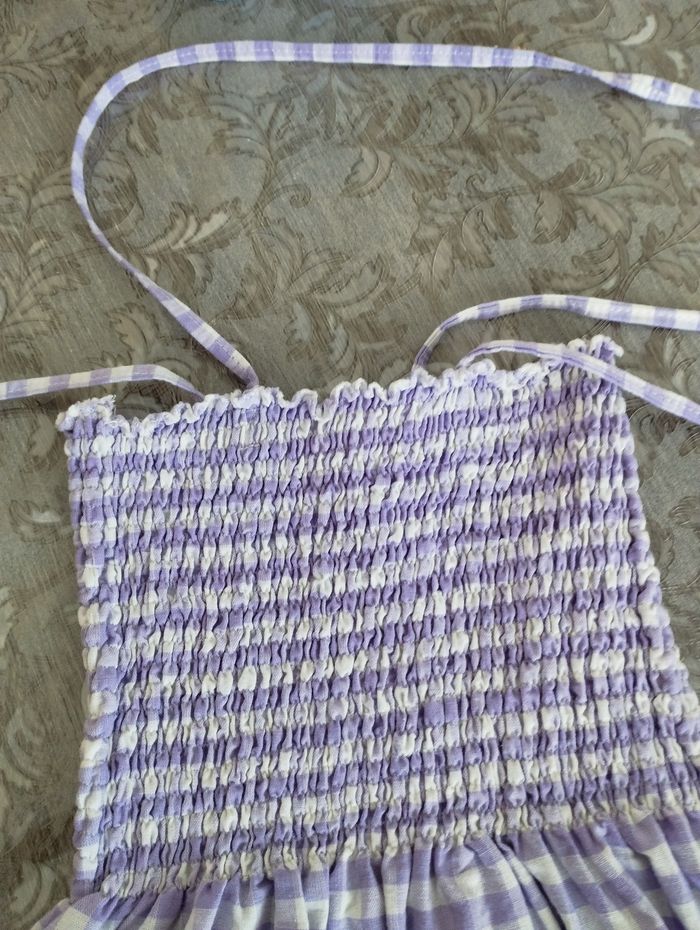 Robe cousue main, largeur smock (peut aller jusqu'à 25cms facilement sans trop tirer) et longueur en photos Bretelles à nouer sur l'épaule