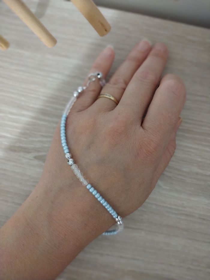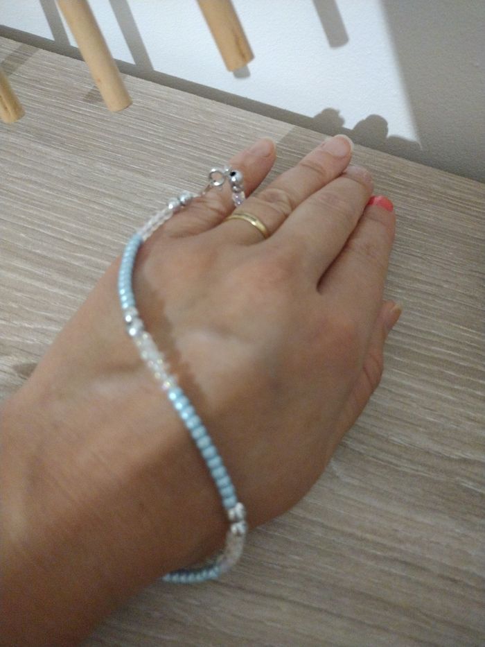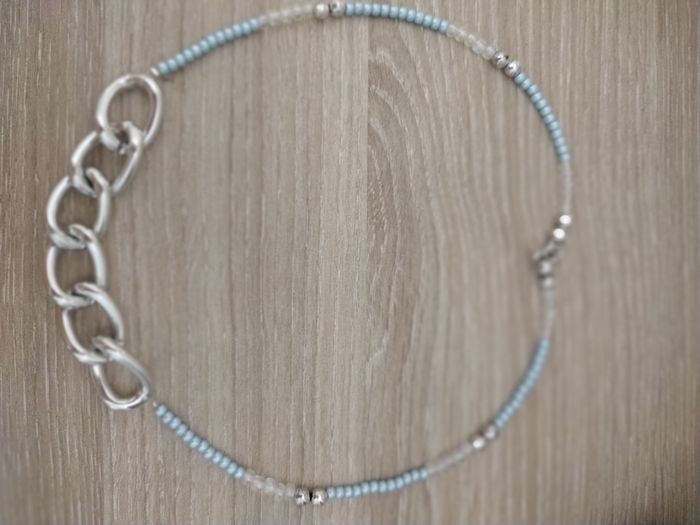 Création collier bleu nacre argenté anneaux - photo numéro 4