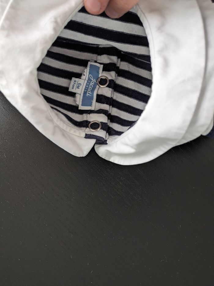 Marinière Jacadi bleu marine et blanc. 6 mois mais Jacadi taille petit.