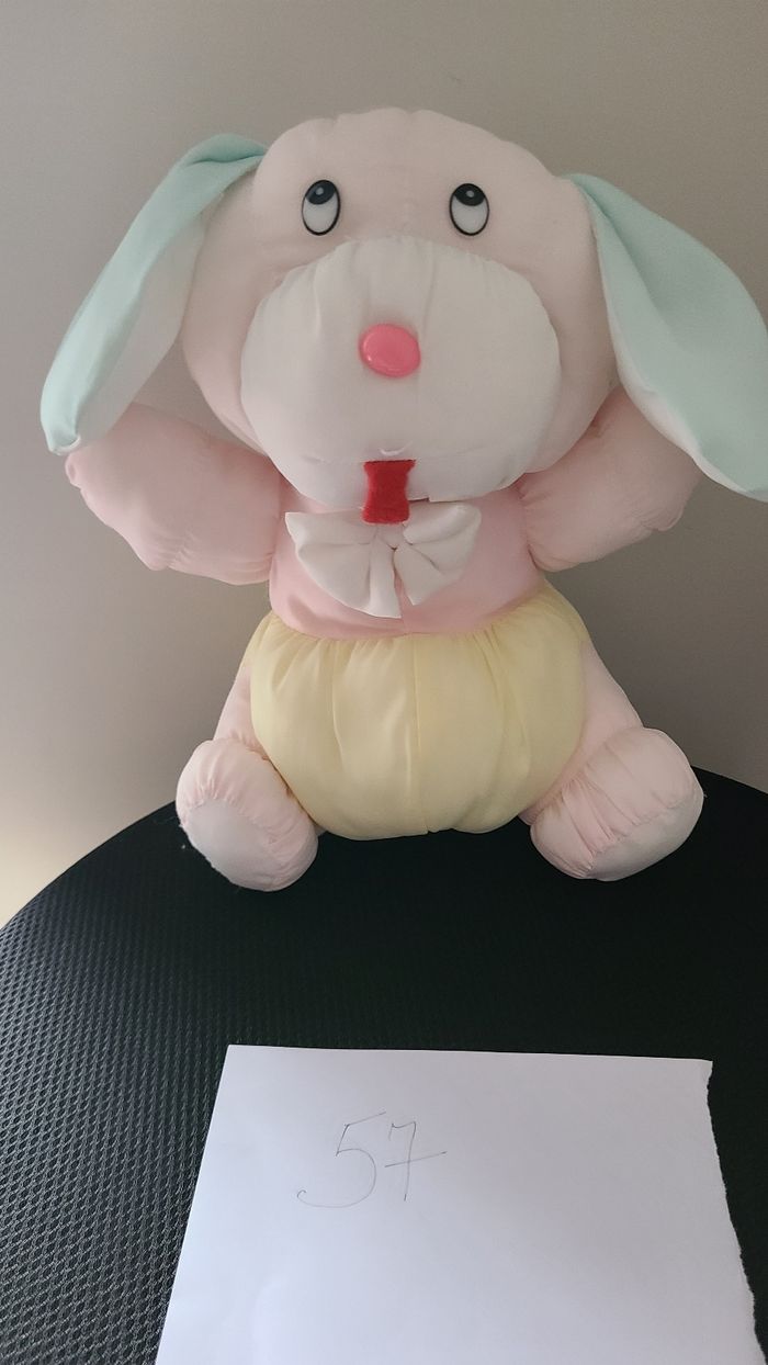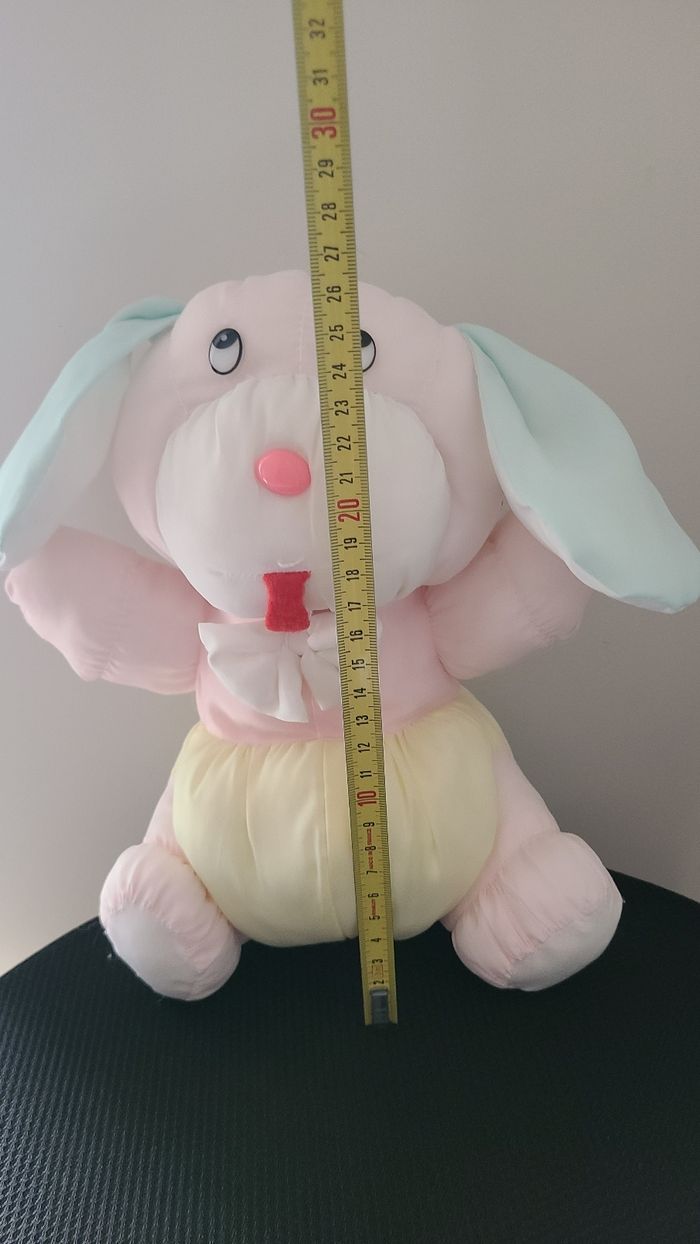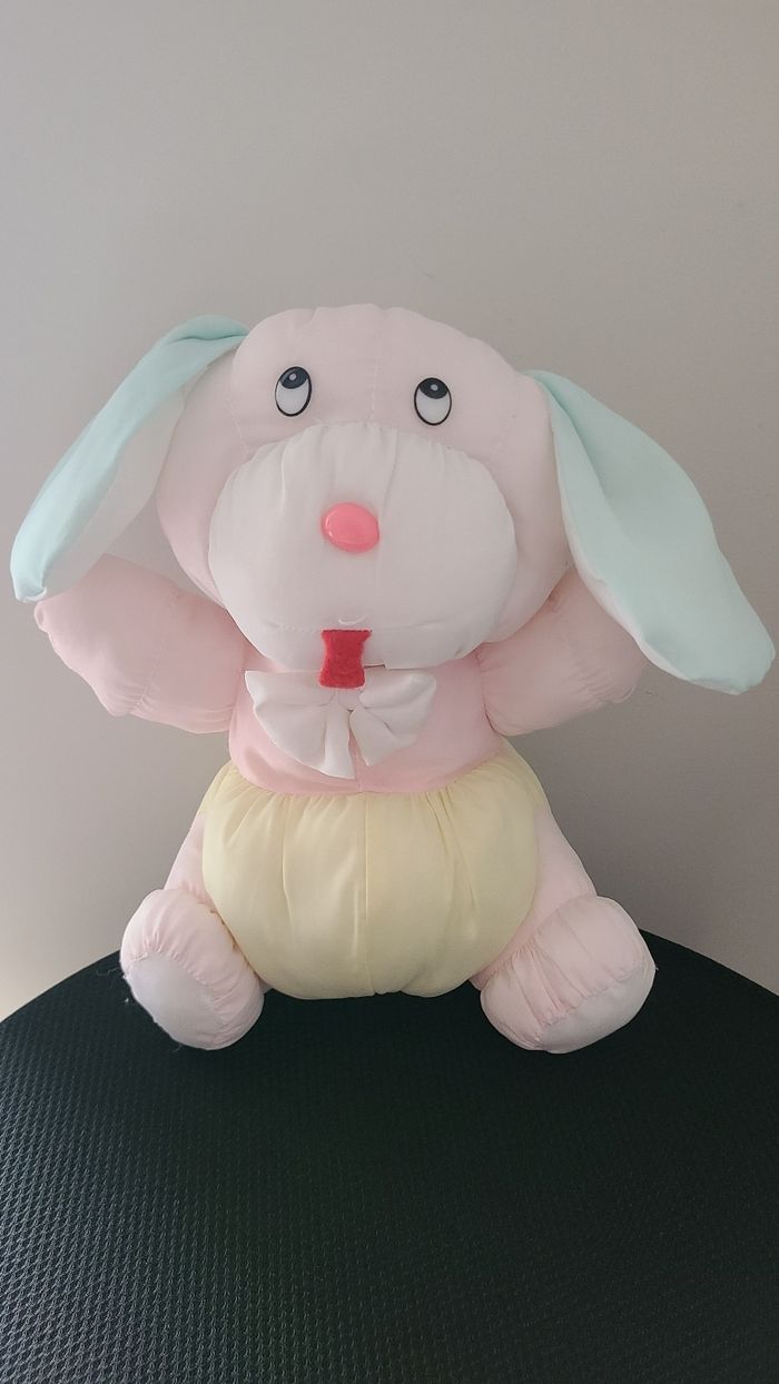 Chien lapin aer doudou rose jaune bleu 33cm env.