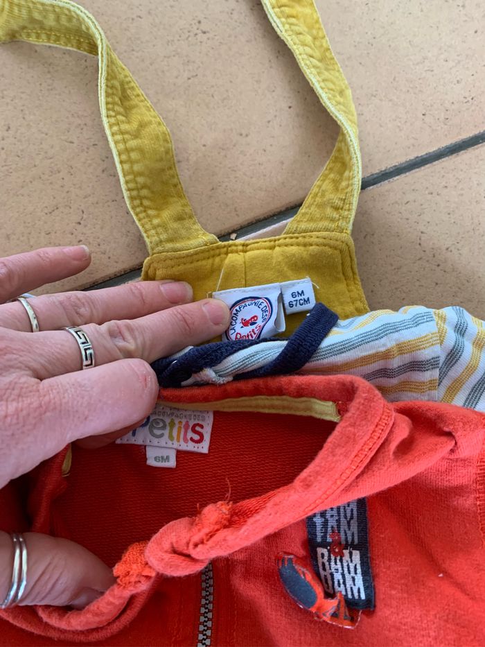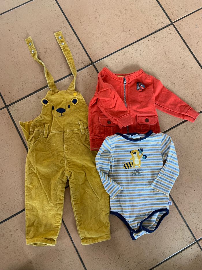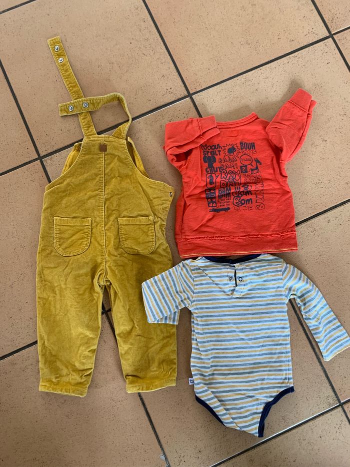 Lot comprenant 1 salopette velours 1 body manches longues 1 sweat à zip Très bon état