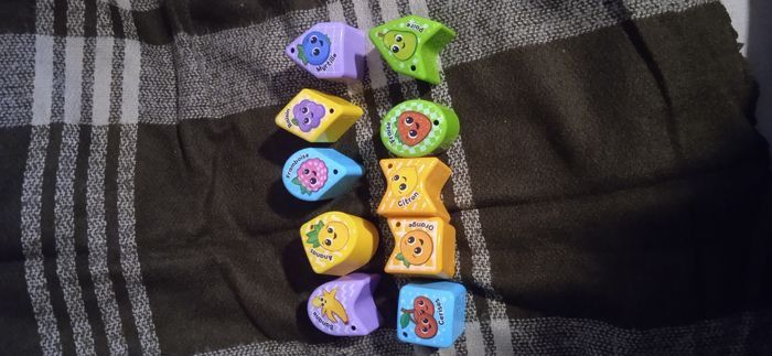 Jeux d'encastrement de 10 pièces différentes, 4 trou en appuyant sur la queue de la pomme le haut tourne pour changer la forme.