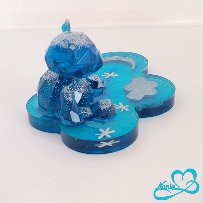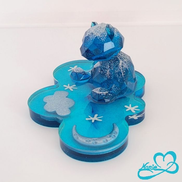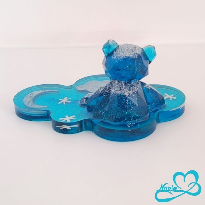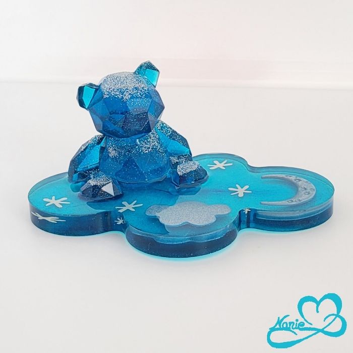 Nounours bleu pailleté sur son nuage avec des étoiles 🌙⭐️ - photo numéro 1