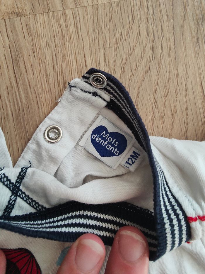 Bonjour, 🌺 Merci de lire attentivement les informations de l'article. Marque : Mots d'enfants Taille : 12 mois État : Très bon état Détails : Porté très peu de fois Problème de l'article :  Aucun. Merci, Bonne recherches ! 🌺