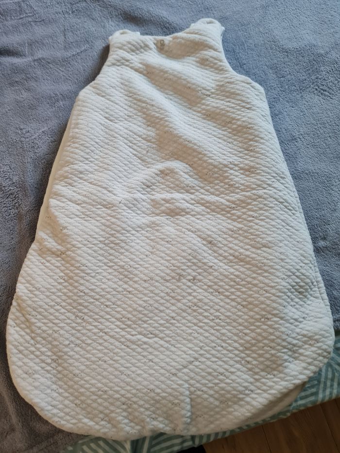 Je vends une gigoteuse bébé 6/12 mois utilisée 1 hiver. Seul problème je l'ai lavé avec d'autres vêtements foncé elle n'est donc moins blanche que lorsque je l'ai acheté.