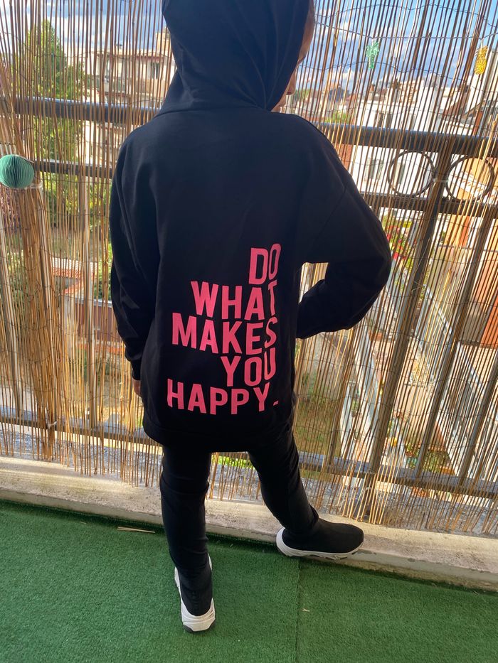 Très jolie pull sweat fin avec écriture au dos. Taille 4 ans