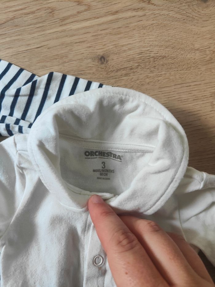 Bonjour, 🌺 Merci de lire attentivement les informations de l'article. Marque : Orchestra Taille : 3 mois État : Très bon état Détails : Porté très peu de fois Problème de l'article :  Aucun. Merci, Bonne recherches ! 🌺