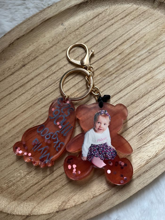 Bonjour, je vous propose mes créations en résine là j’ai créé des porte-clés ou je peux le personnaliser avec prénom ou photo comme sur l’image. Si vous souhaitez plus de renseignements, n’hésitez pas à me contacter en privé.