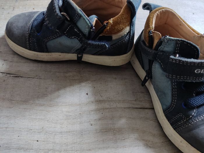 Baskets marque Geox, taille 23, cuir, couleur bleu. Fermeture zip a l'intérieur pour faciliter l'habillage. Et scratch pour le maintien et le réglage . Bon état