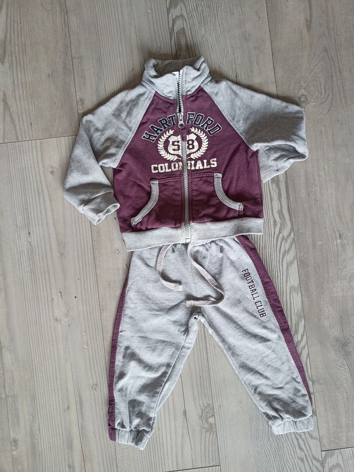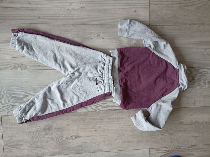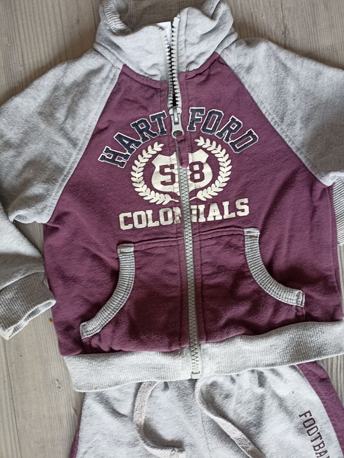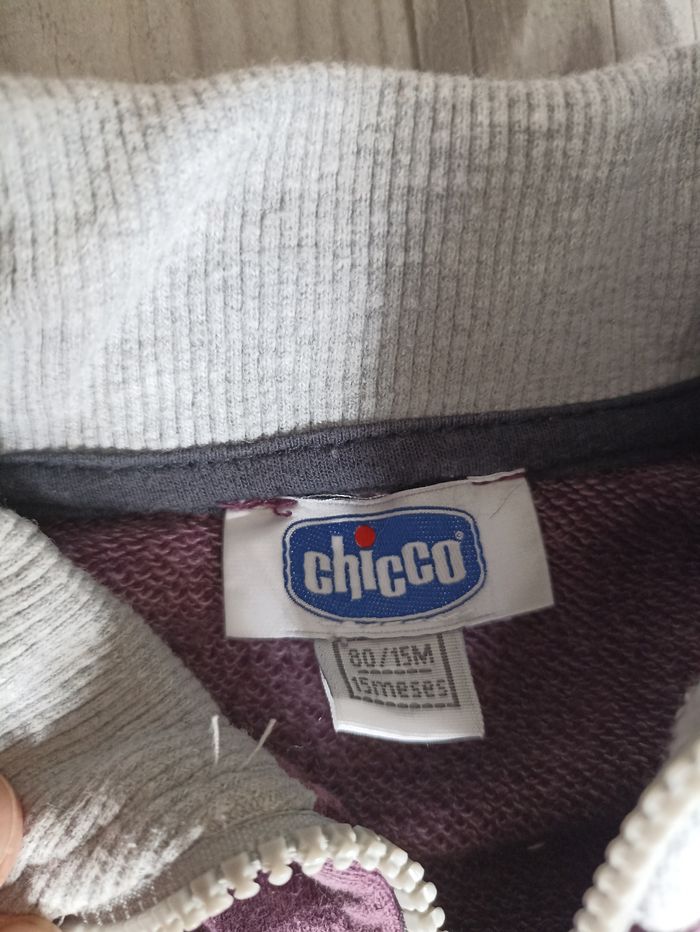 Survêtement avec pantalon gris et bordeau et veste a capuche et zip. Inscrit taille 15 mois mais correspond à un 12 mois . J'ai d'autres petits articles bébé mixte dans mon dressing #chicco