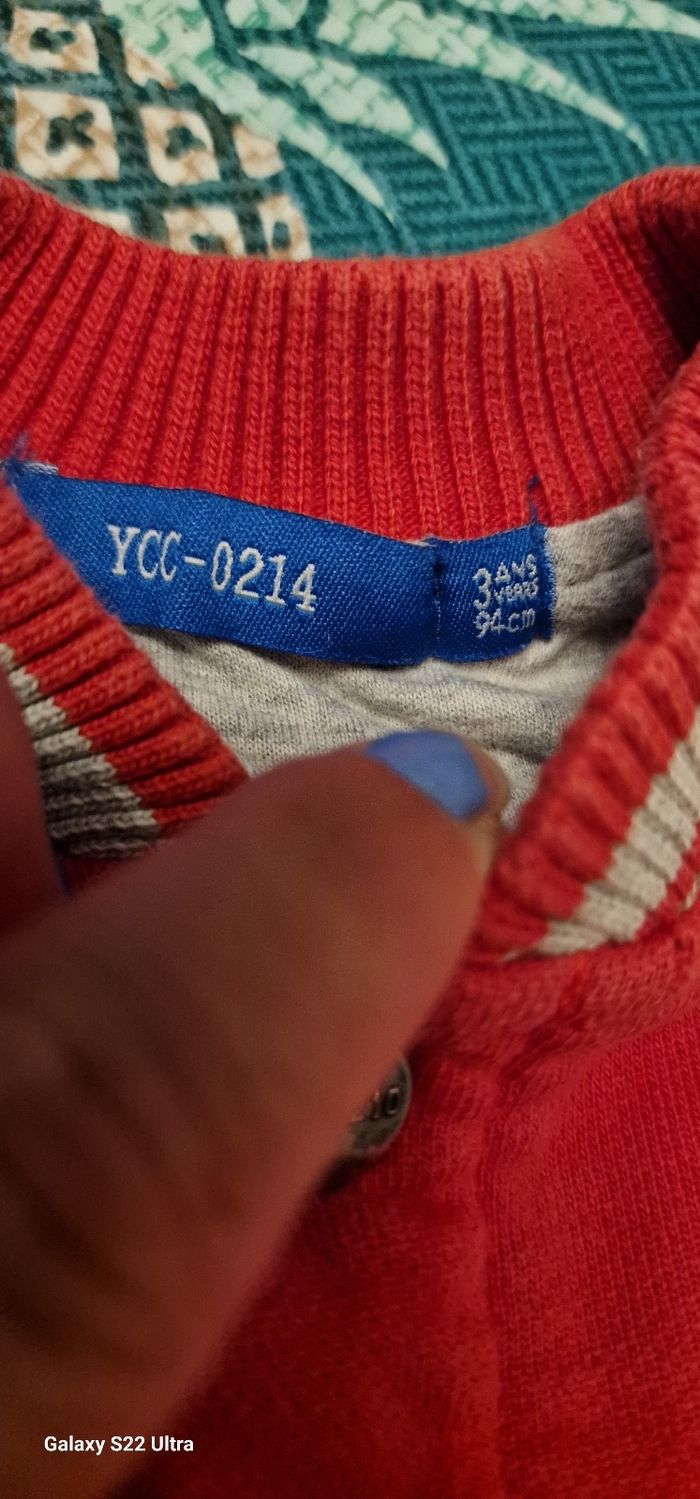 Veste de marque ycc-0214 rouge et gris de taille 3ans très bonne état