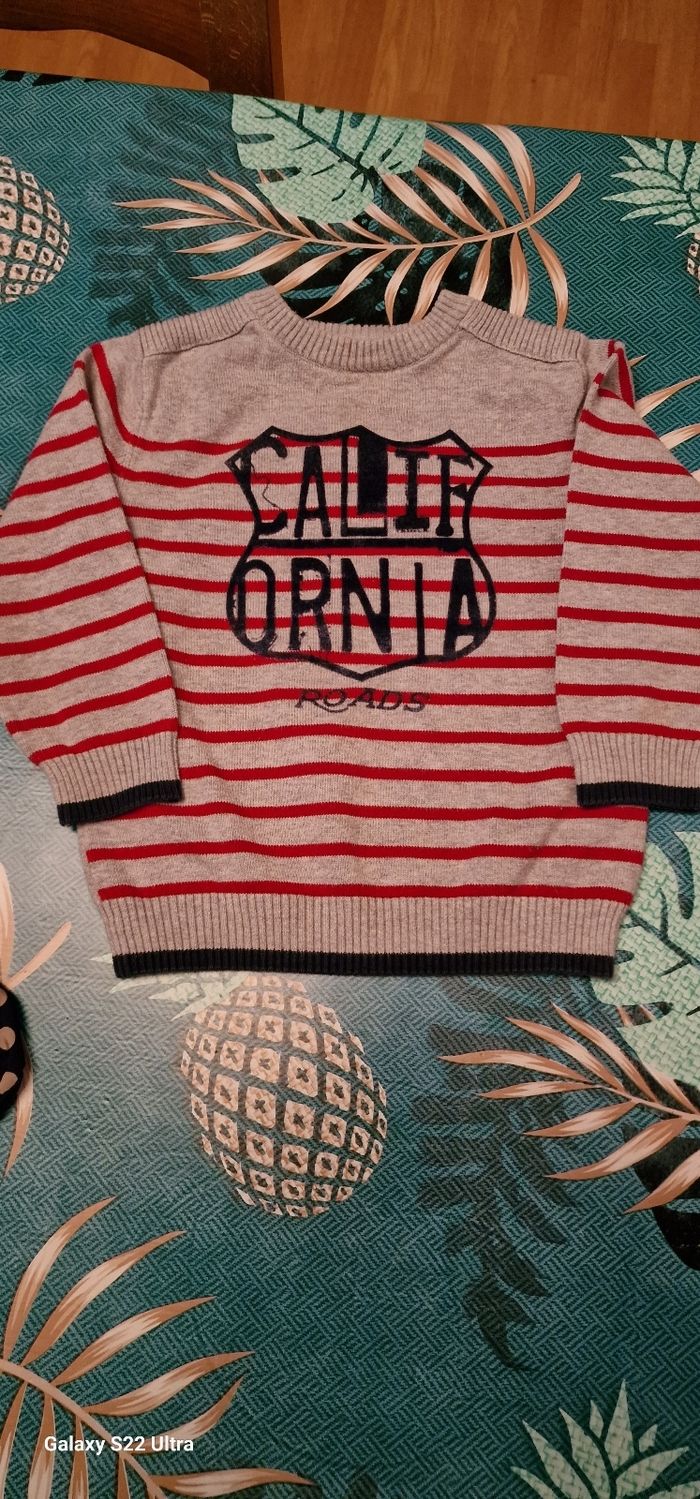 Pull de marque orchestra gris et rouge taille 3ans très bonne état
