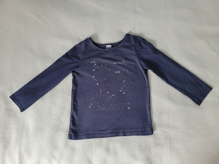 T-shirt manches longues 6 ans 116 cm tape à l'œil Couleur bleu nuit "love on te galaxy" En très bon état
