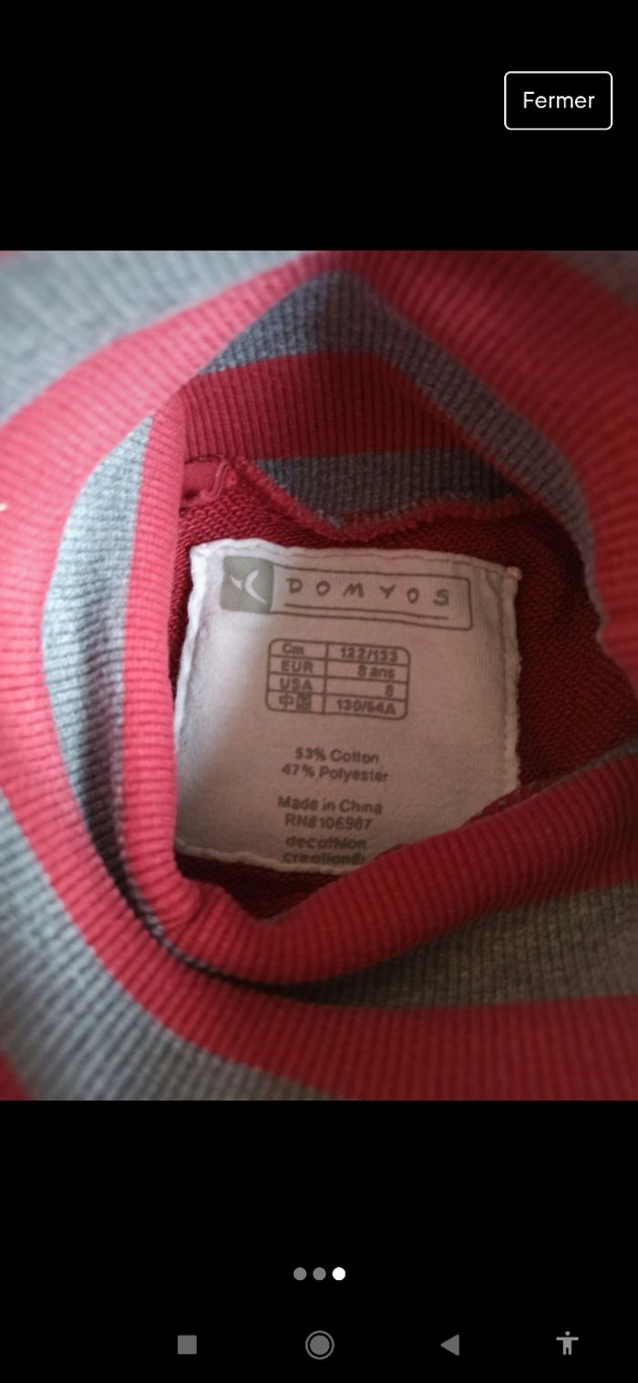 Col roulé rayures rouge gris 8 ans Domyos - photo numéro 3