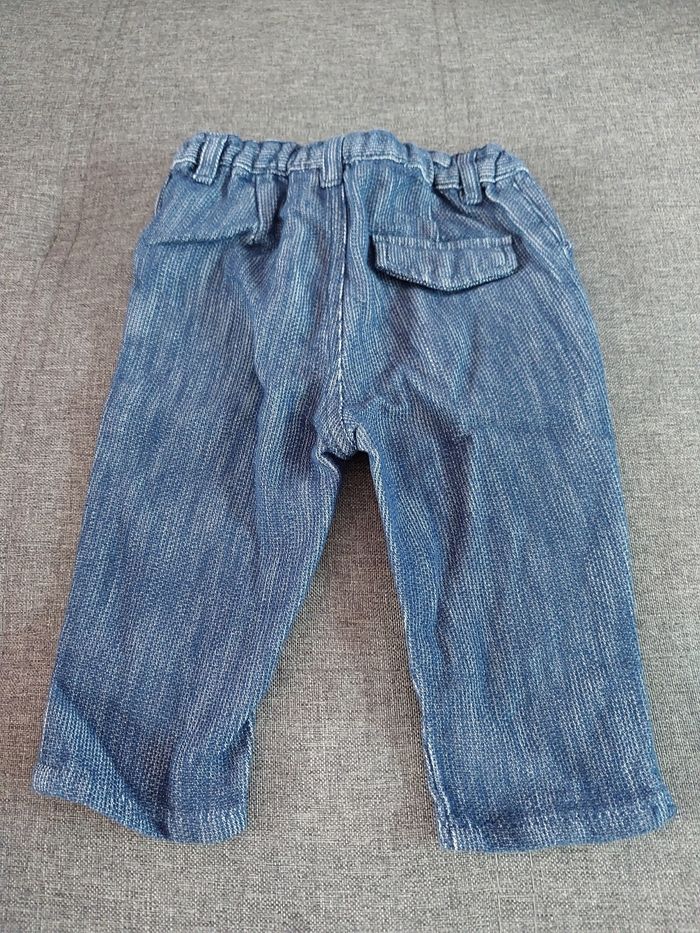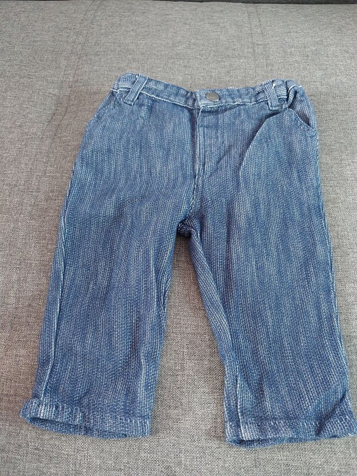 Pantalon couleur jeans mais matière légère très agréable à porter pour les bébés Très bon état peu porté 3 euros