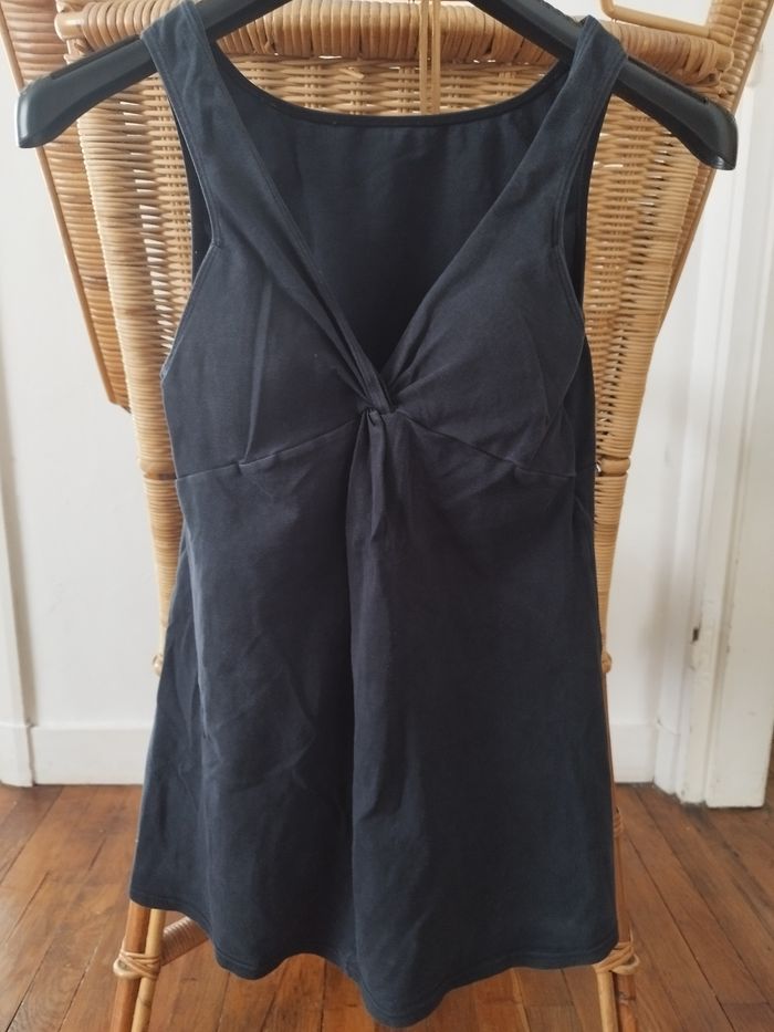 Article : Tunique Marque : Adam et Eve Taille : 85 A Composition : 95% coton, 5% elasthanne ⛵ En très bon état, Haut avec décolleté et soutien gorge intégré, amples en dessous de la poitrine.mater