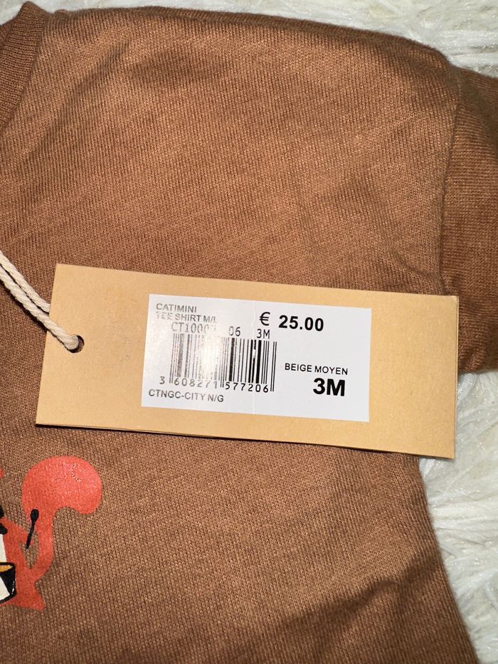 T-shirt de la marque catimini neuf. Couleur marron clair. Taille 3 mois