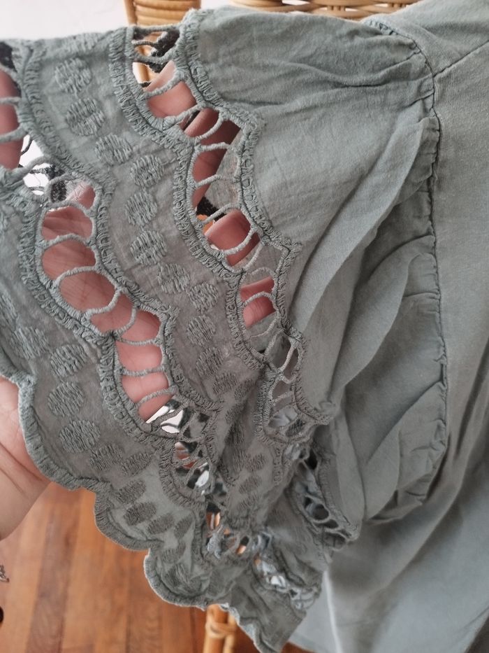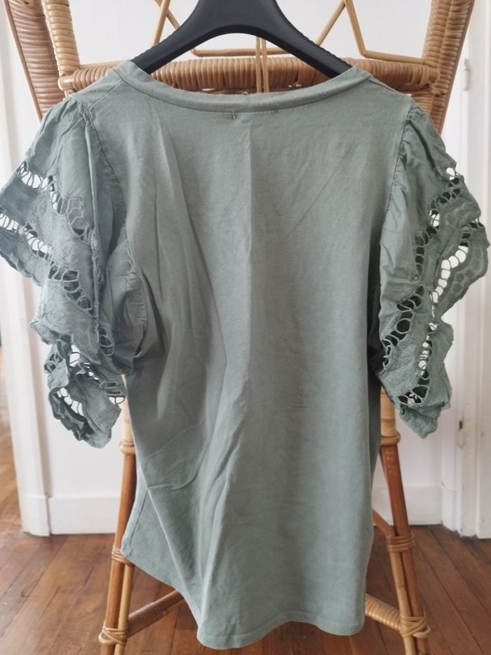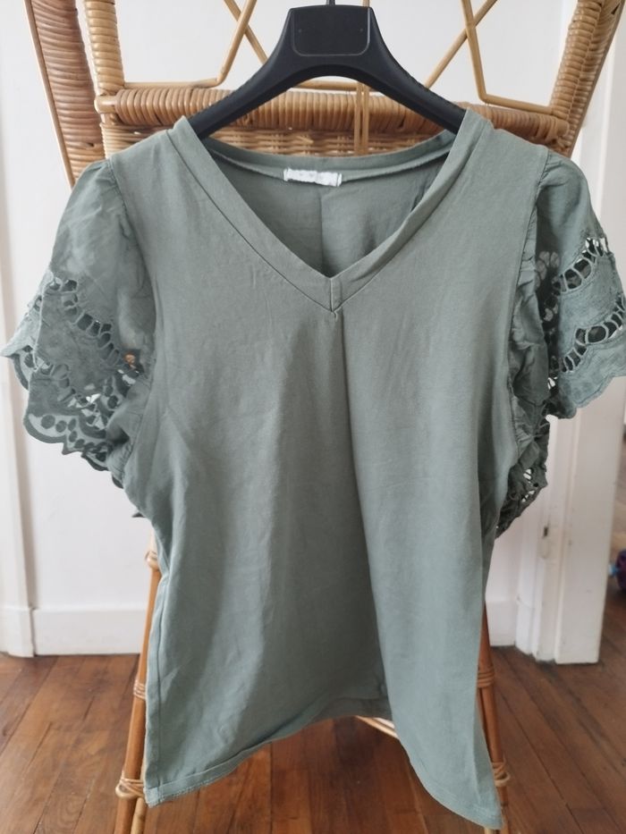 Article : haut Marque : non précisée Taille : unique Composition : 100% coton ⛵ En très bon état, manches courtes travaillés
