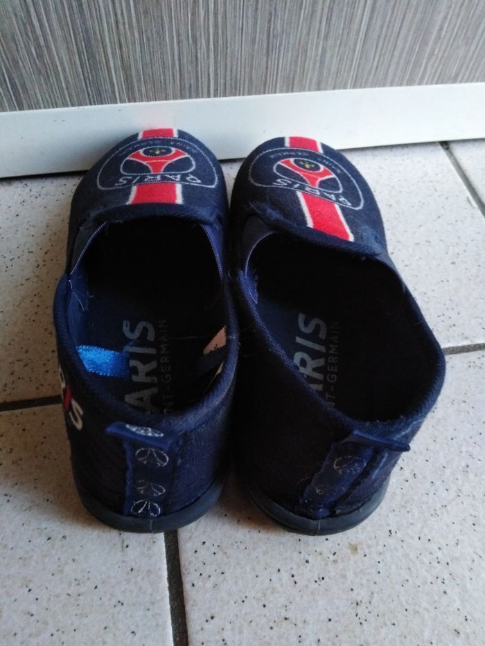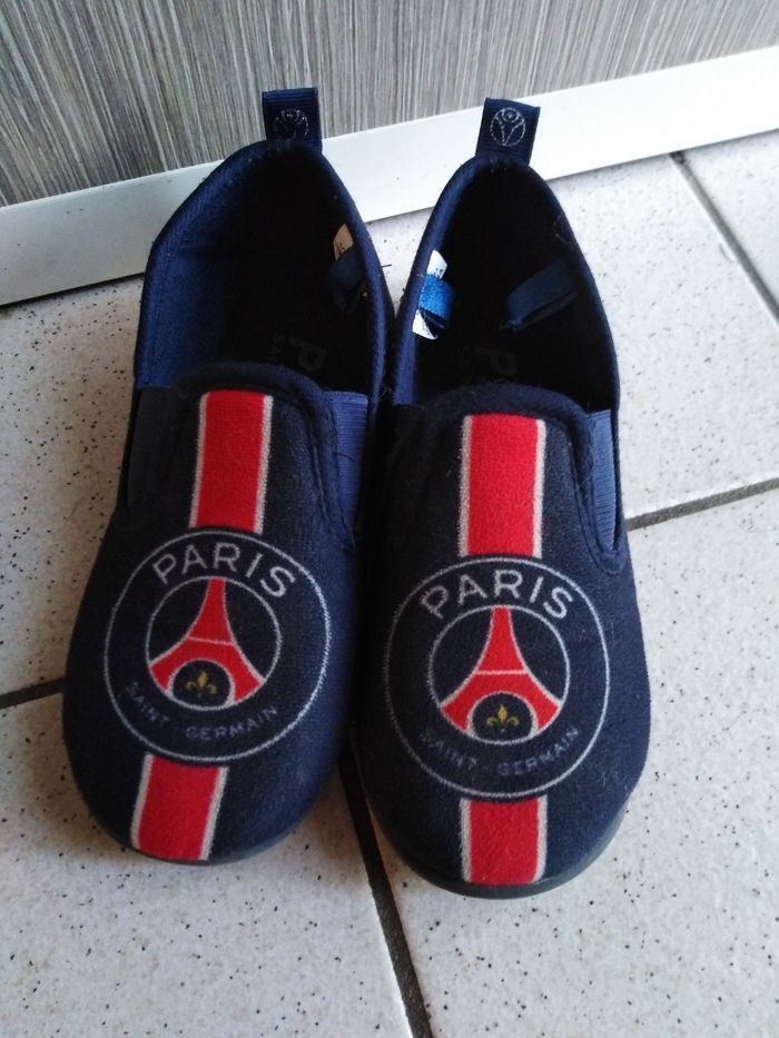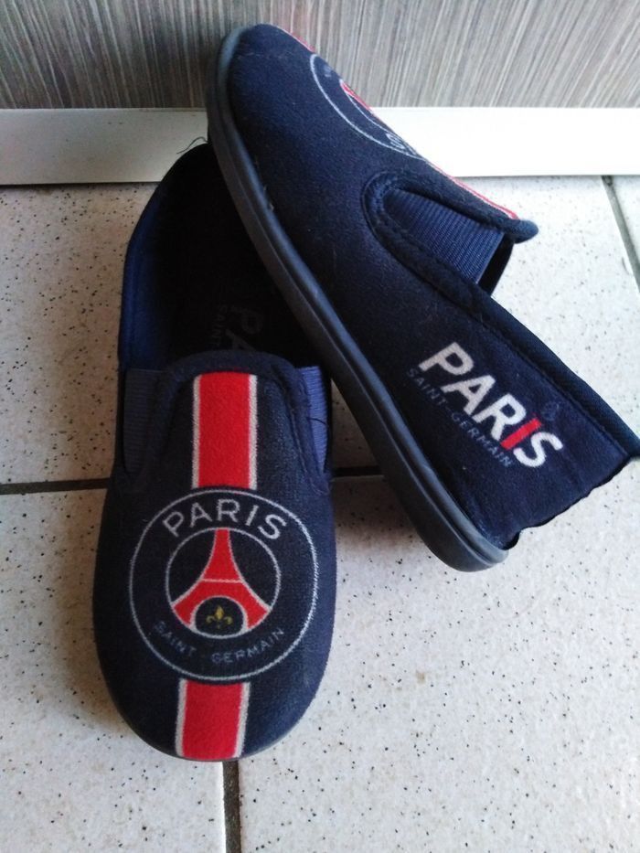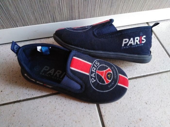 Bon état même si bien portées pour cette paire de chaussons garçon aux couleurs du PSG. Qq pliures cependant. Beaucoup D'autres chaussures, crocs, sandales garçon également à vendre ds mon dressing et réductions activées. J'envois le colis le jour MM ou le lendemain de l'achat