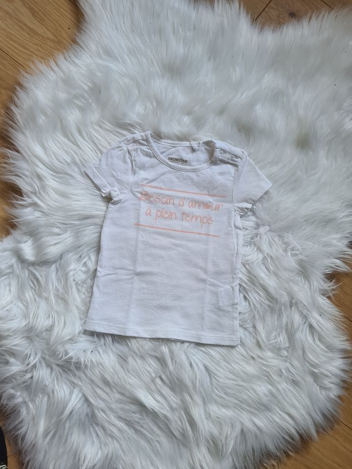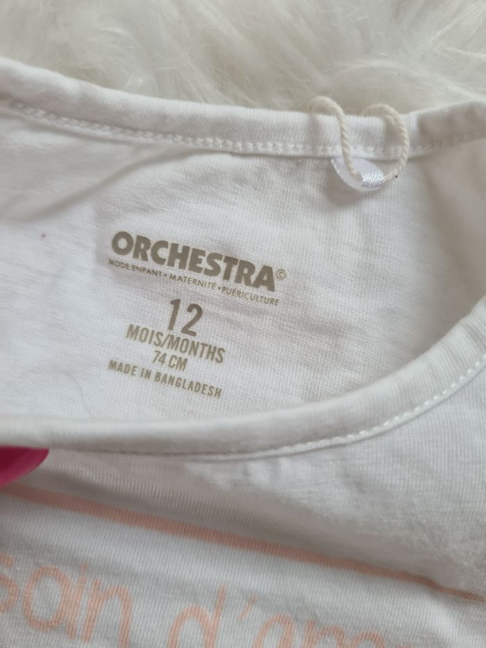 Tee-shirt manches courtes blanc avec écriture rose Orchestra 12mois