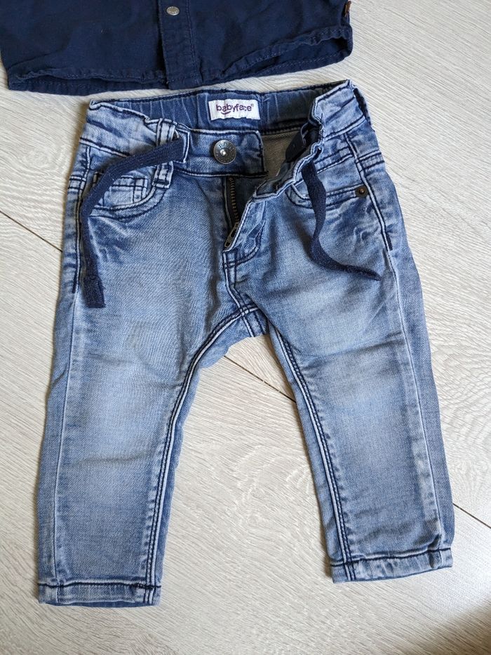 Ensemble pour bébé garçon en très bon état. Jean facile à enfiler et chemise obaibi,ouverture facile par pressions