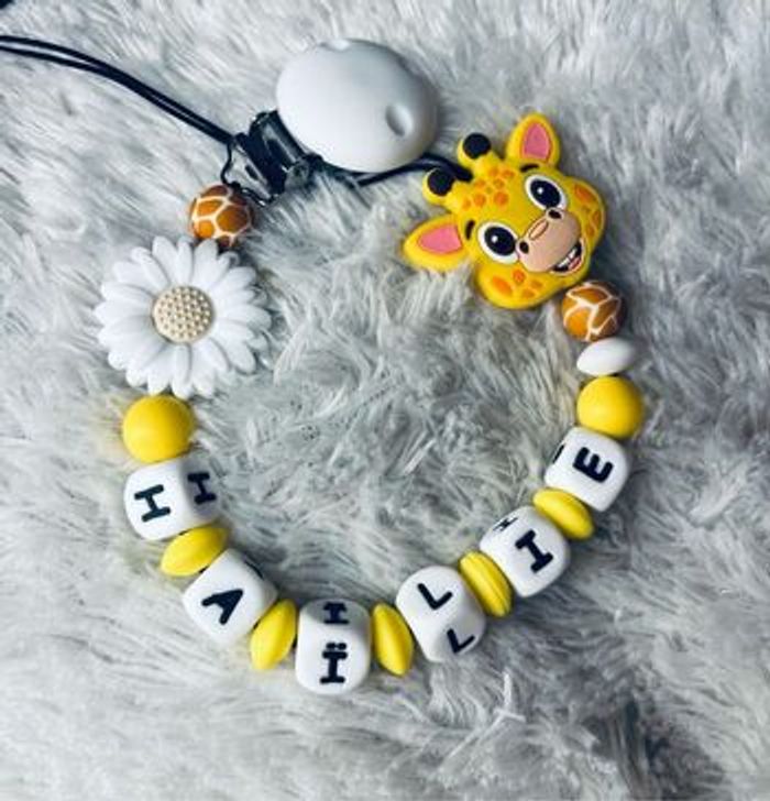 Attache tétine personnalisé en silicone ou en bois au souhait de l’acheteur . Personnalisable au choix de l’acheteur que ce soit la couleur comme le prénom ou le thème . Le fil est doublé pour plus de sécurité tout le long de l’attache tétine. N’hésitez pas à me demander et regarder mon dressing. Une photo vous sera envoyée avant l’expédition pour vous ayez un aperçu du rendu. Tous les produits sont réalisés avec du materiel spécial conçu aux bébés , enfants. Il