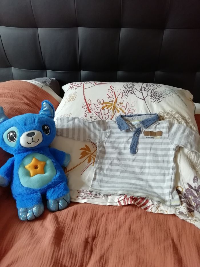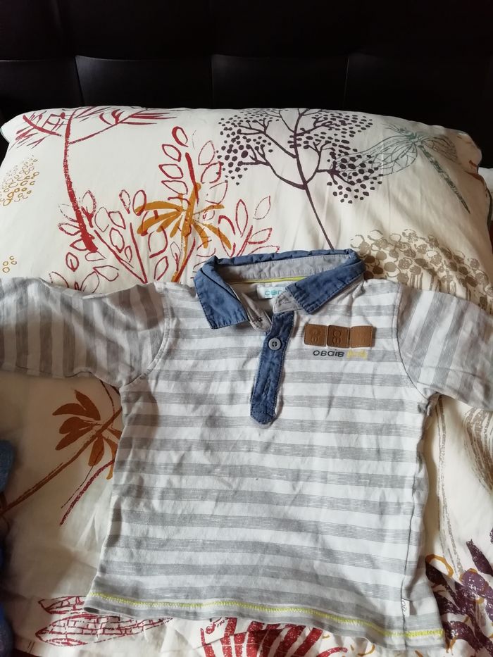 Tee shirt okaidi taille 6 mois Couleur blanc à rayures grise 3 boutons au niveau du col