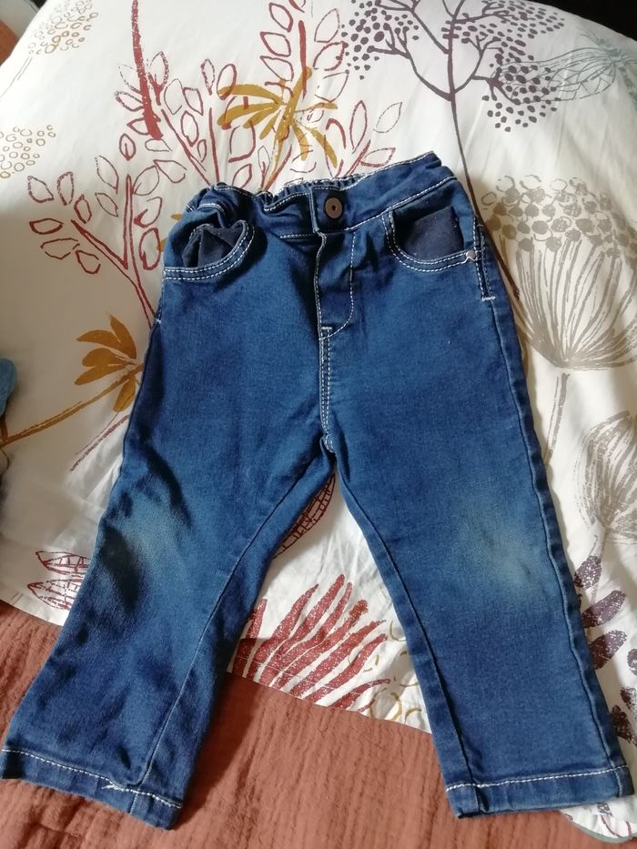 Jeans 12 mois Couleur bleu foncé Fermeture à pression 2 poches avant 😀