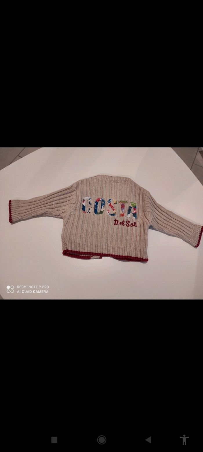 Gilet beige et rouge. 100% coton. 3 mois.