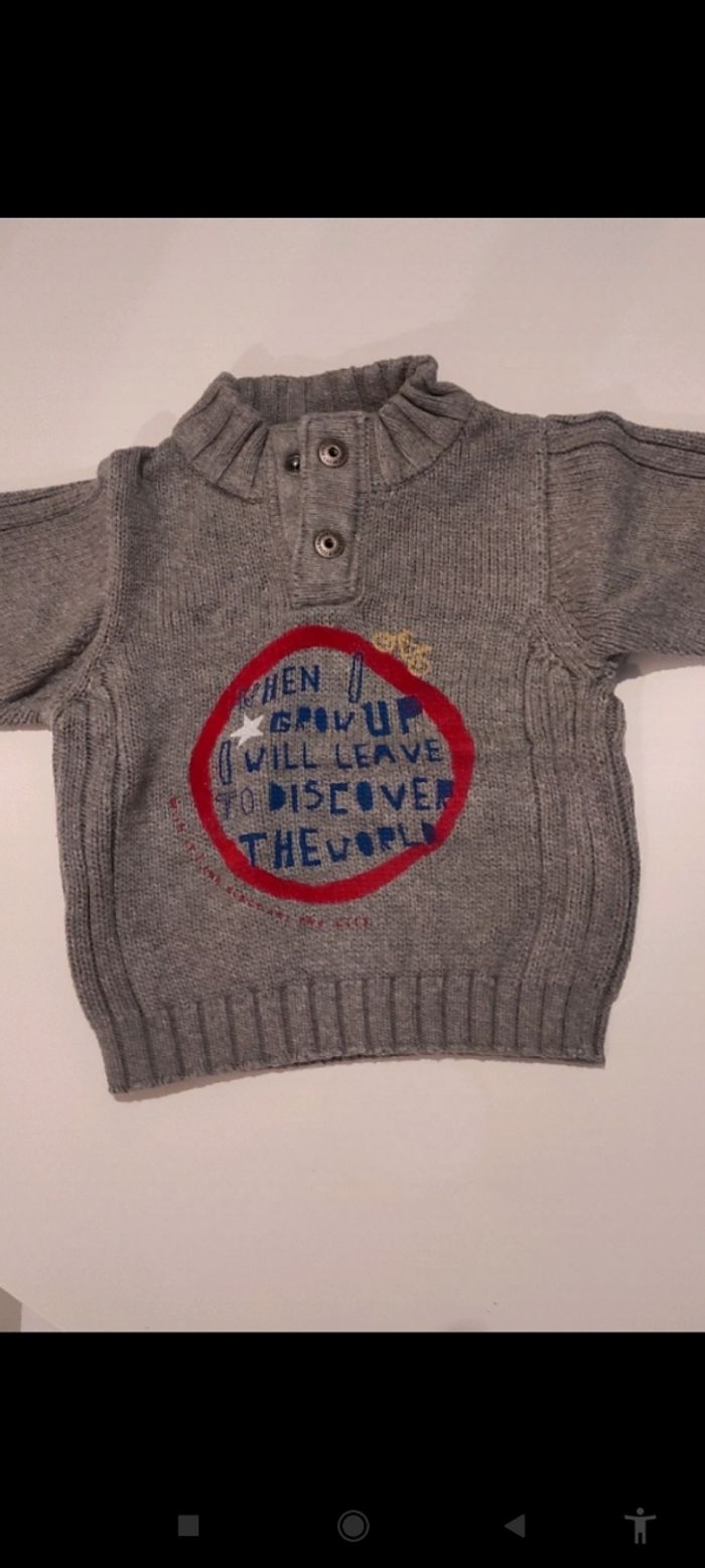 Pull, protège le cou, 2 boutons par pression . 3 mois