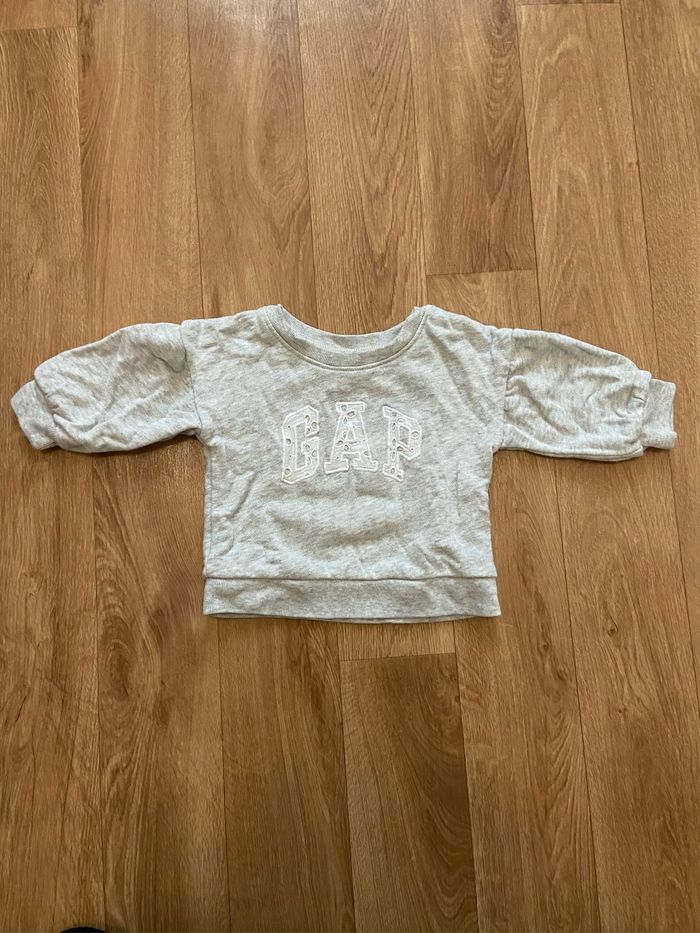 Sweat coton gris imprimé gap brodé blanc Manche légèrement bouffantes Coton