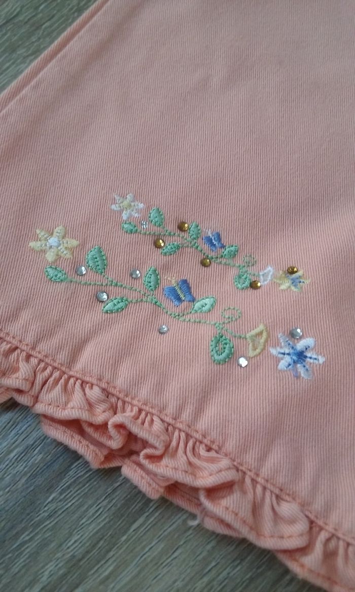 Pantalon saumon, ceinture élastique, 100% coton, 23 mois.