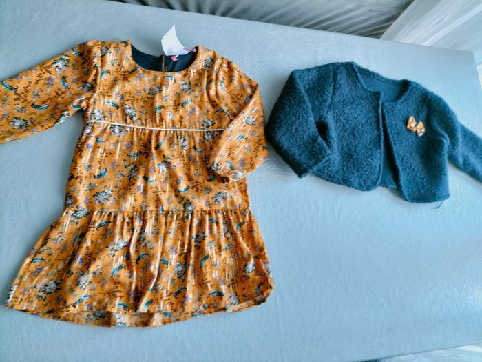 Je vends une très jolie robe avec son blazer de chez p'tit môme et deux pantalons un de chez Primark et l'autre de chez tex.