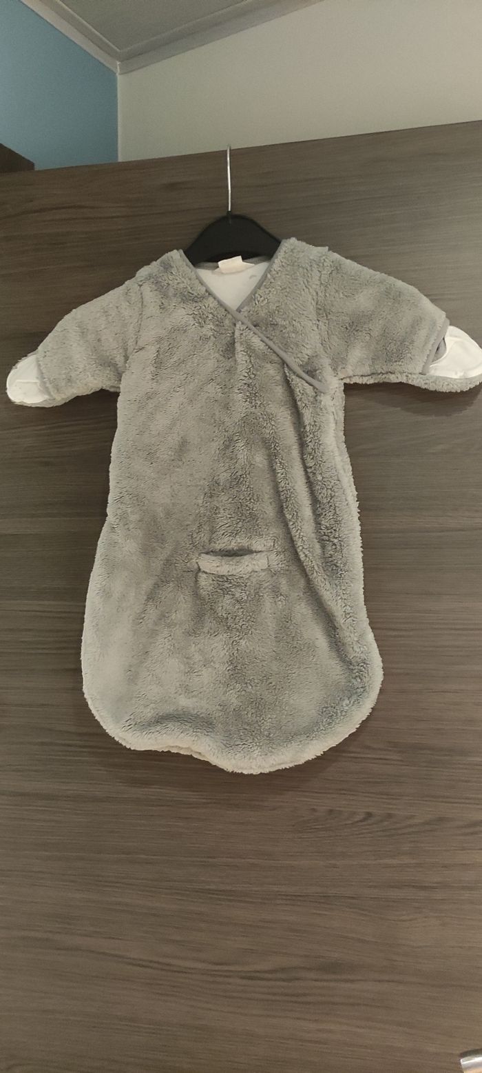 Nid d'ange Marque : Bemini Taille : 0-3mois Fermeture : 1 tirette + 3 boutons Petites mains couverte Très très bon état, N a été porté qu'une fois. Sans taches sans accroc, Maison non fumeur