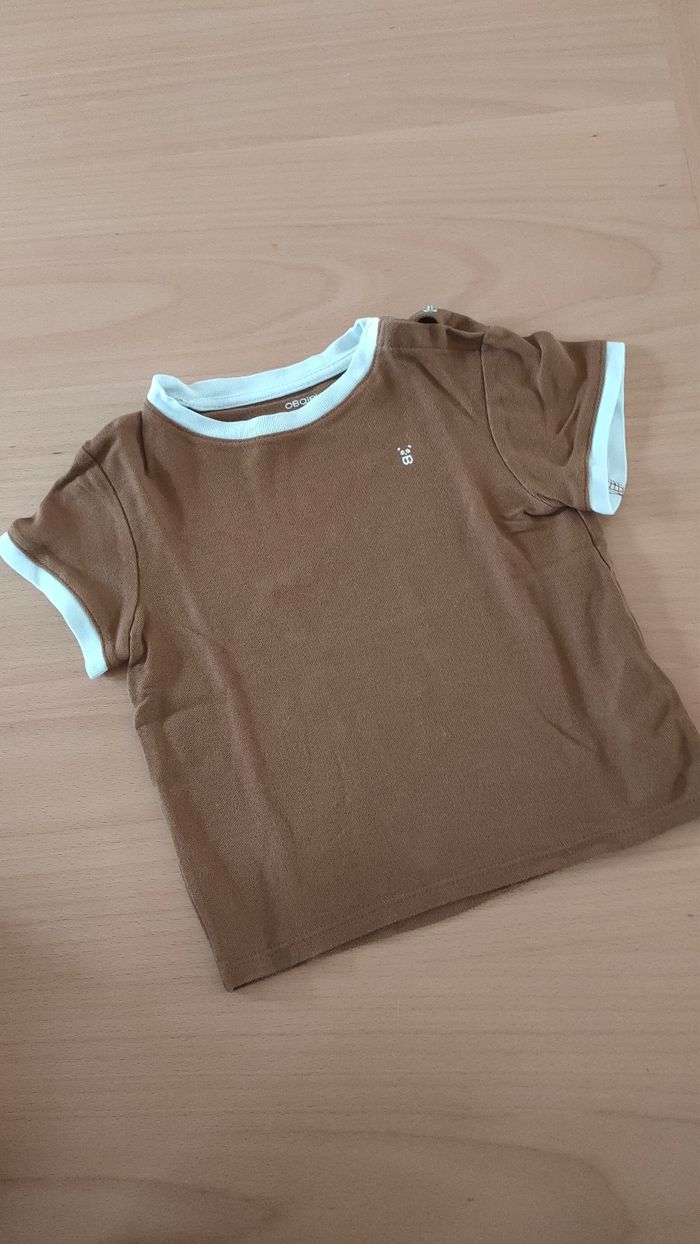 Tee-shirt Obaïbi marron et blanc en excellent état. Réduction sur les lots