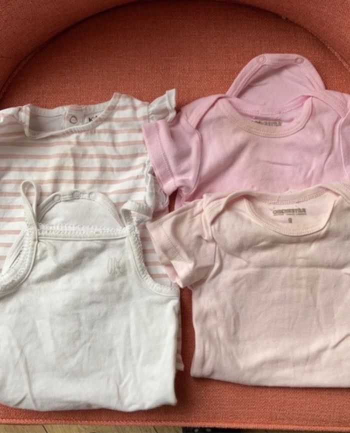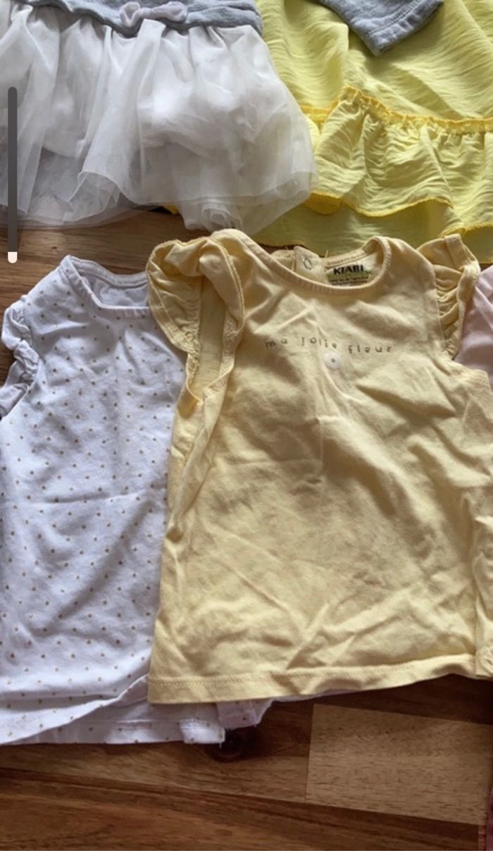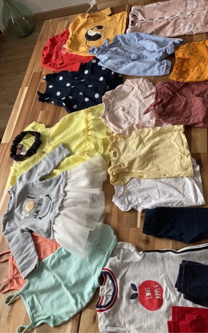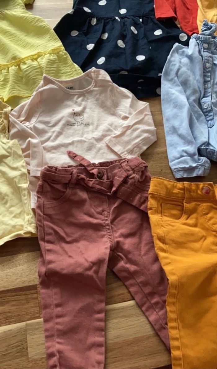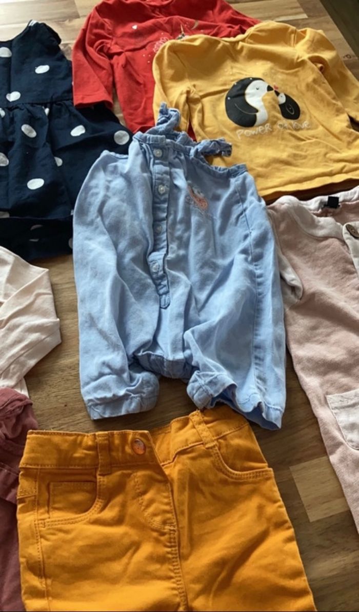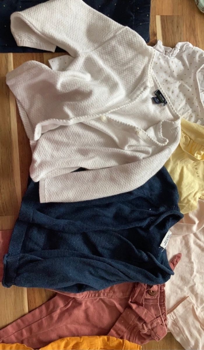 Lot de vêtement 9 mois pour enfant 9kg taille 69 à 72 cm 2 bodies sans manche Une robe avec 2 leggings 2 tee shirt + 3 avec manches 2 pantalons + 1 leeging Une combinaison 1 salopette short légère 2 robes légères + 1 robe plus chaude 2 gilets Donne si intéressé 3 bodies et un tee shirt voir dernière photo ils ont des taches Divers marques : kiabi orchestra