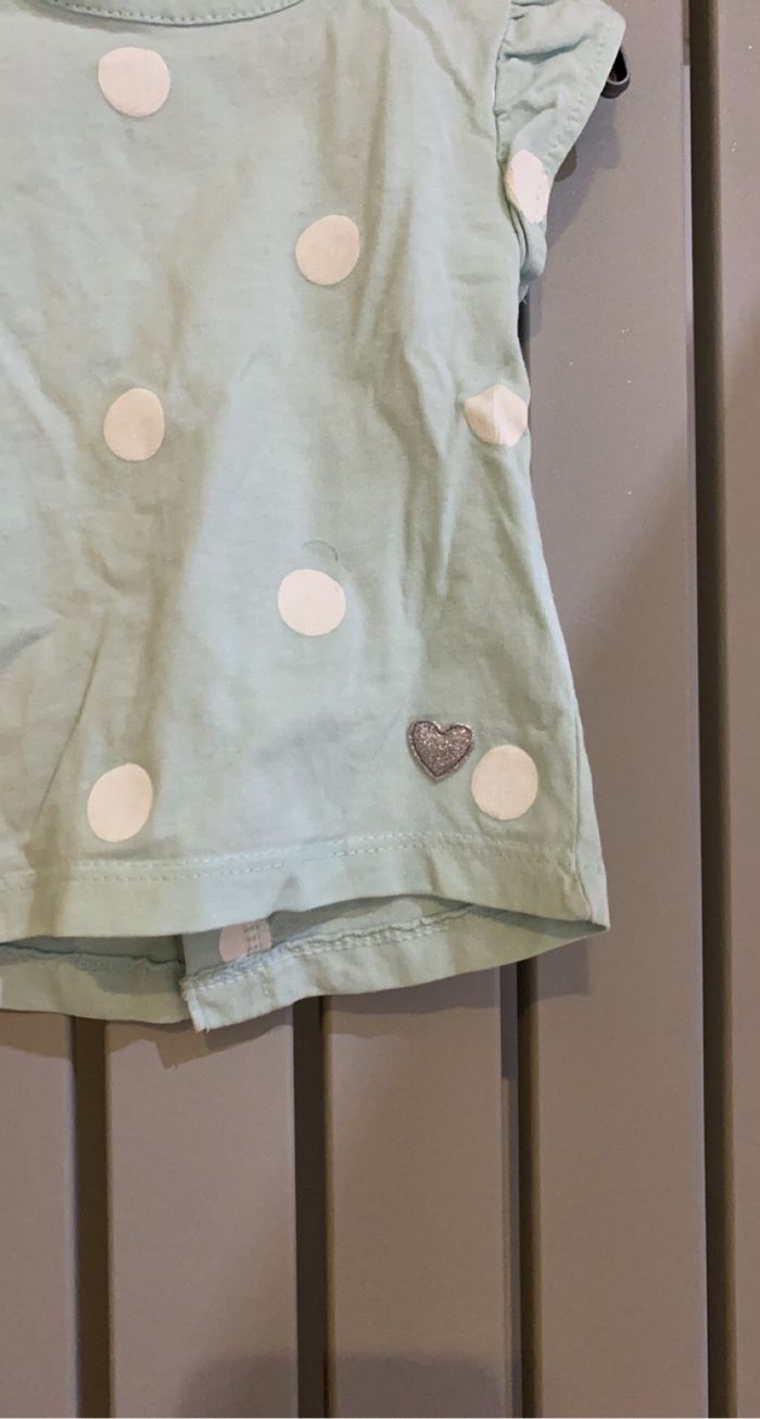 T-shirt 1 mois - très bon état #tshirtbebefille #kiabi #vertdeau #coeurargenté
