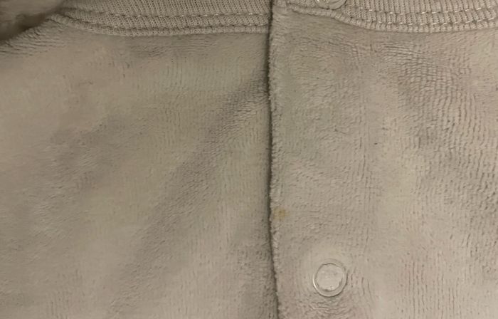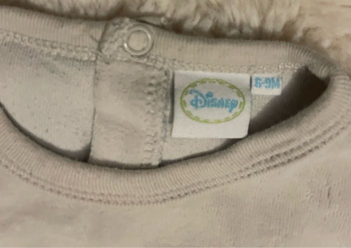 Pyjama en velours de la licence Winnie l’ourson de Disney Taille 6/9 mois Couleur gris Présence d’une petite tâche en haut du dos (voir photo) Occasion, bon état