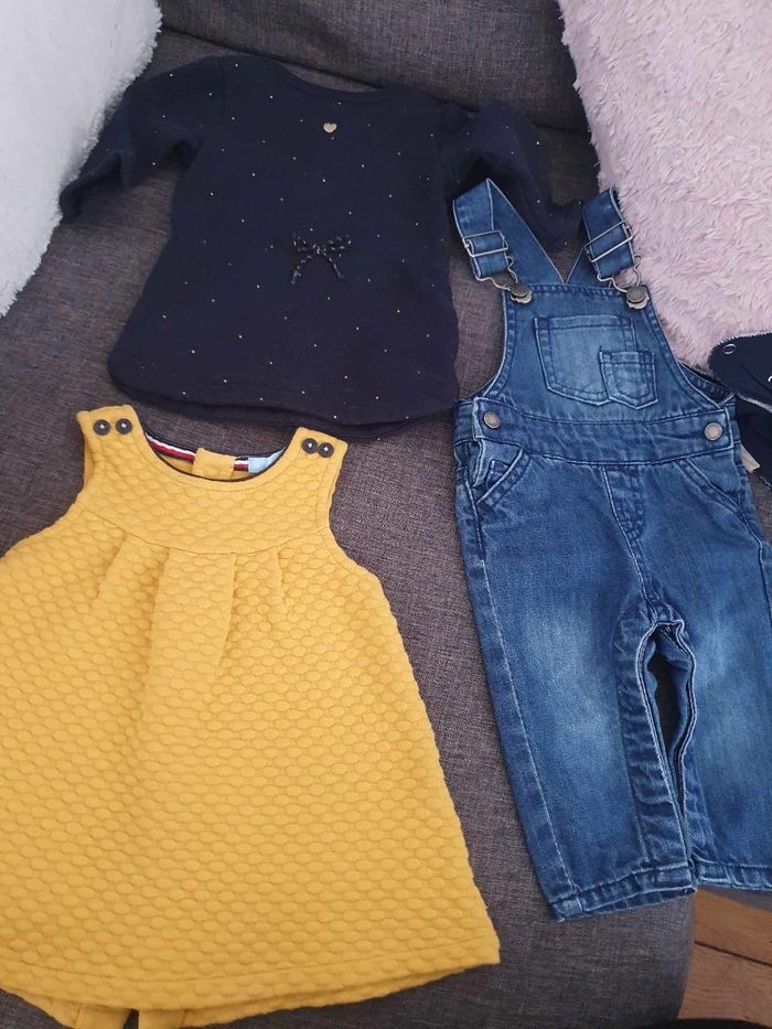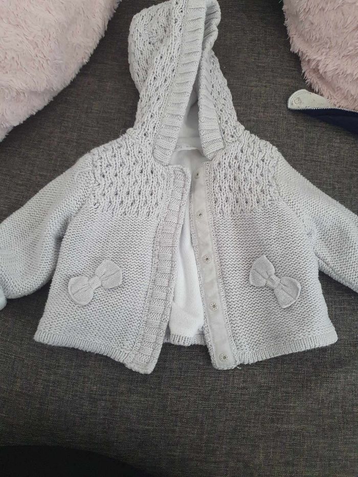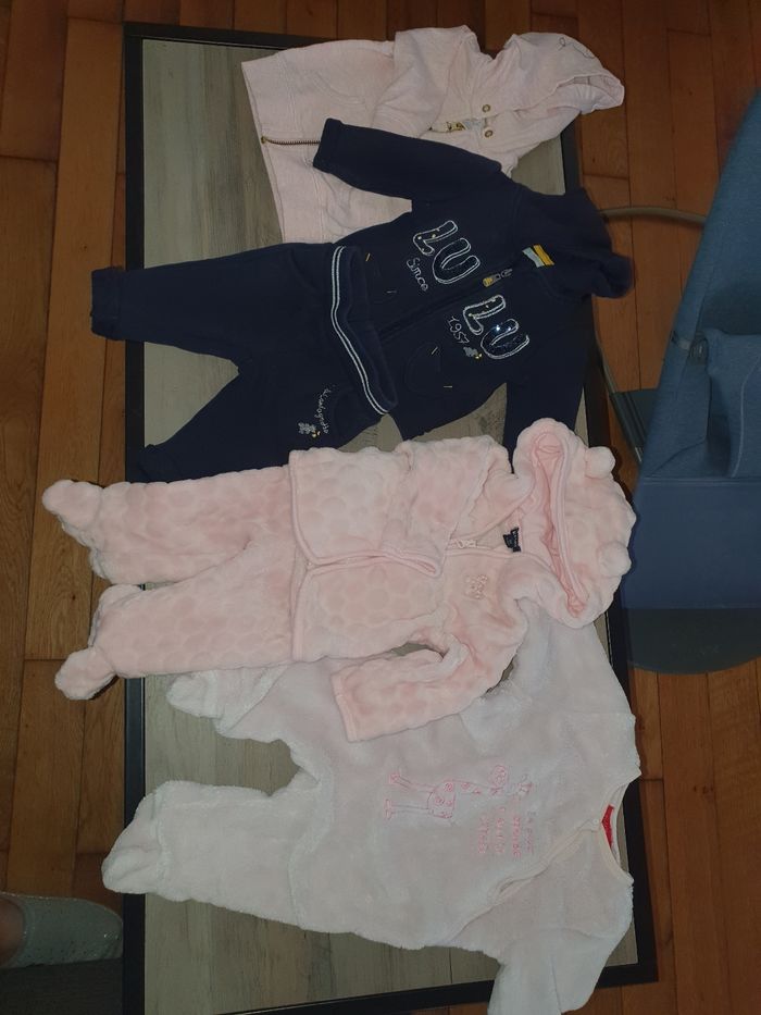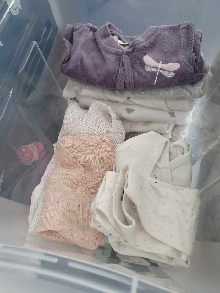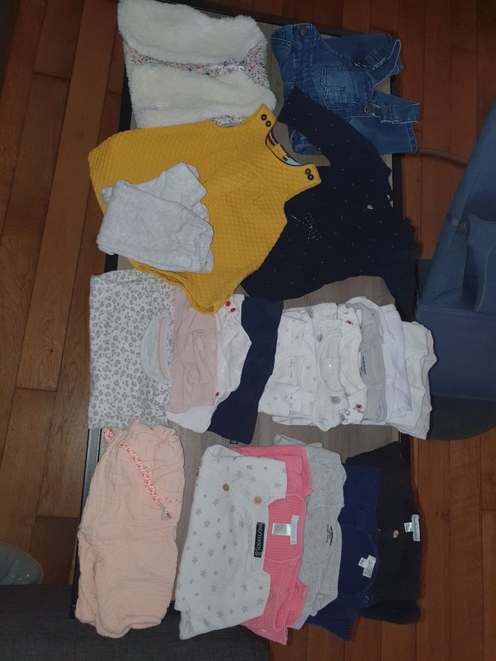 Bonjour à vendre lot vêtements fille. 1 mois et 3 mois. 1mois : 1 combinaison chaude, 1 manteau, 1 jupe, 2 leggings, 4 pyjamas , 1 haut manches longues, 8 body manches longues, 3 body manches courtes, 4 gilets, 1 pull. 3 mois : 4 hauts manches longues , 1 salopette, 2 robes, 1 gilet sans manche, 1 pantalon, 3 pyjamas, 1 veste, 1 tenue lulu survêtement, 1 combinaison chaude, 2 bas avec chaussettes, 5 gilets , 7 bodys manches longues. Plusieurs marques. Je donnerai en plus quelques paires de chaussettes et bonnets. Envoie rapide 🌷