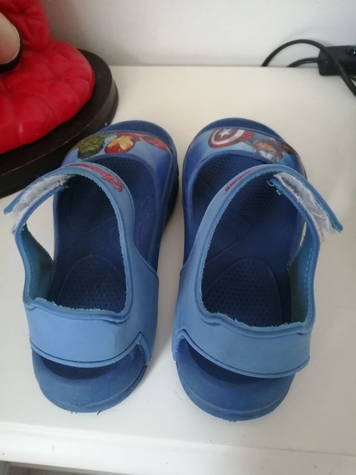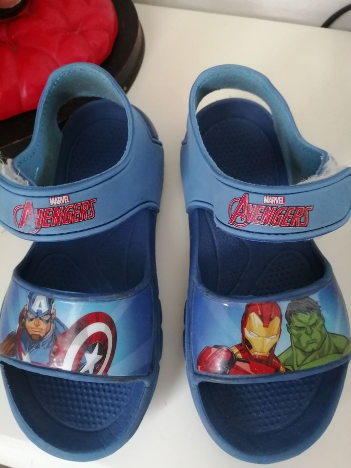 Sandalette garçon bleu avengers à scratch. On voit qu elles ont étaient portées mais elles sont encore en bon état. Pointure 28 /29