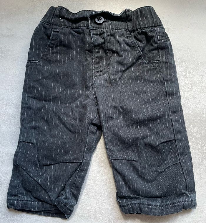 Pantalon avec doublure de la marque Kimbaloo Taille 6 mois Couleur noir à rayures Petites traces d’utilisation Occasion, bon état