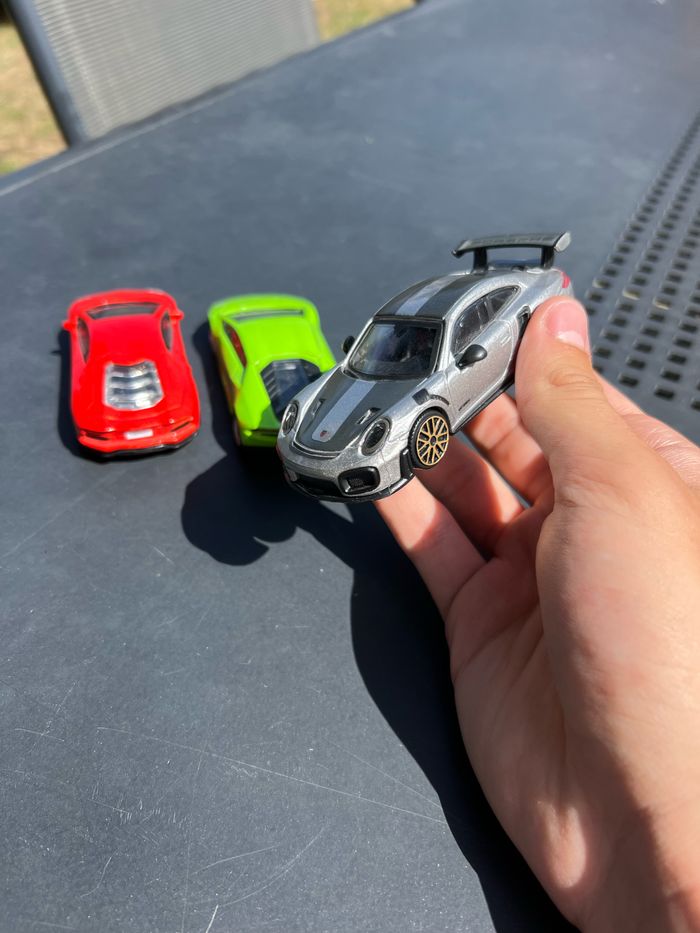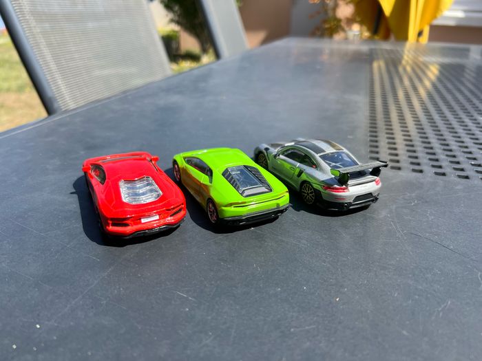 Lot de trois voitures 1/43 Lamborghini aventador Lamborghini huracan Porsche gt2rs
