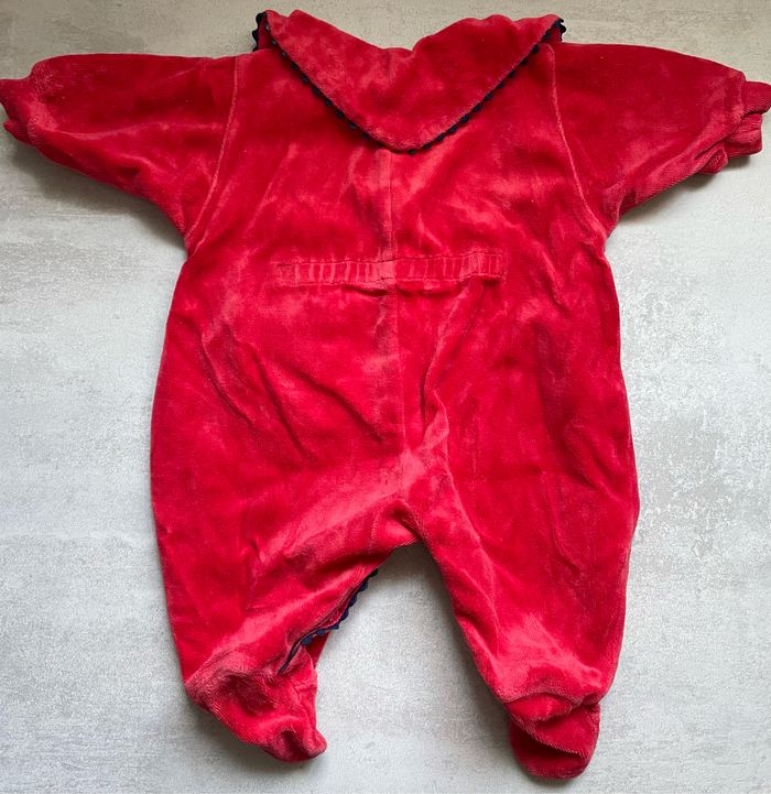 Pyjama en velours (ancien modèle) Taille 1 mois (étiquette effacée) Motif sorcière Petites traces d’utilisation Occasion, bon état